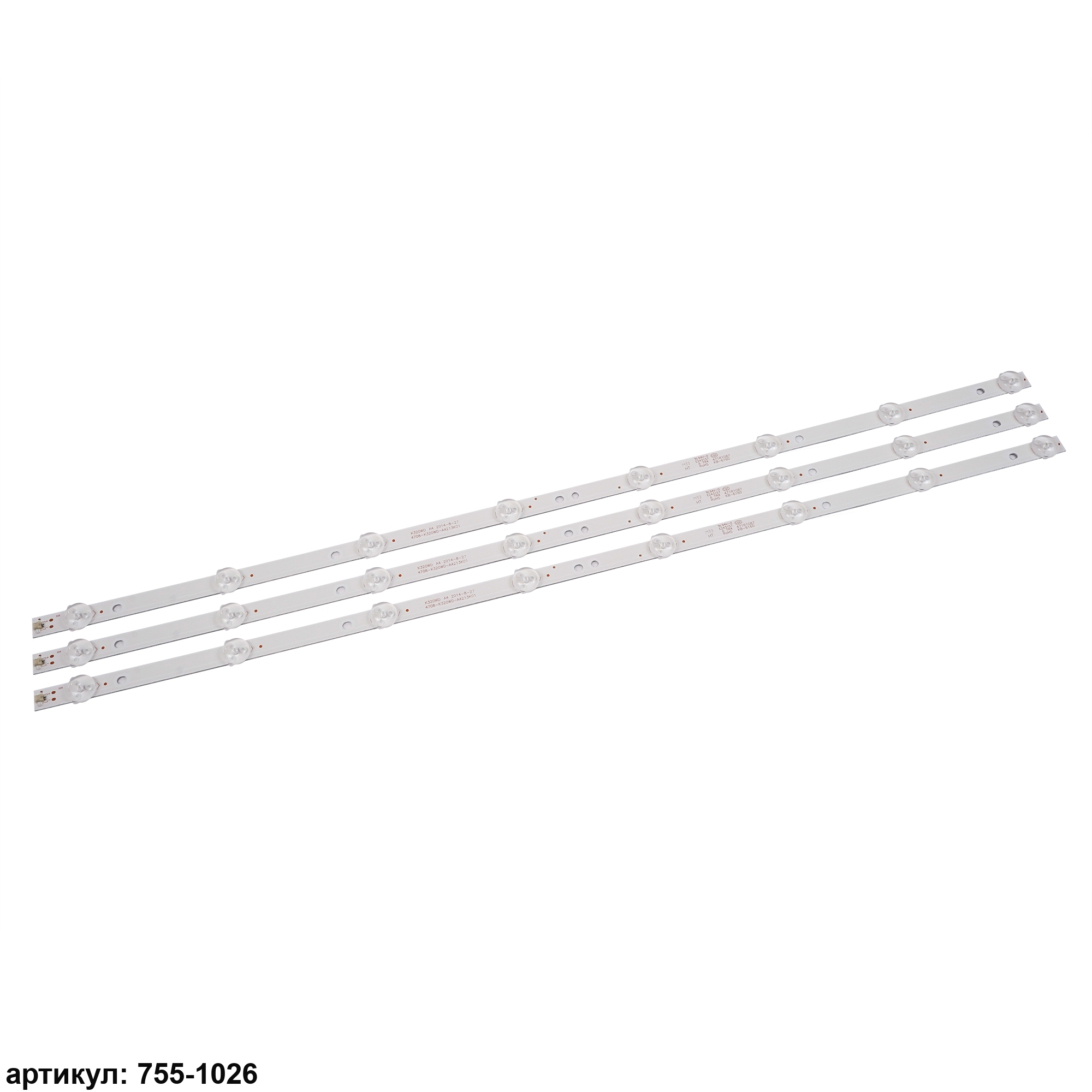 Комплект планок светодиодной подсветки для телевизора Philips 32' / (8 led 3V 620mm)Комплект включает в себя:- 3 планки 32' 4708-K320WD-A4213K01Совместимые p/n: 4708-K320WD-A2213K01, 471R1055, 4708-K320WD-A4213K01Подходит для моделей телевизора: Philips 32PFL3045, Samsung LED-TV-3231D, TCL LE32D59, Daewoo L32R630VKE, Fusion FLTV-32K120T, Horizont 32LE3181, 32LE7181D, LG 32L31D, ROLSEN RL-32D1508T2, TELEFUNKEN TF-LED32S34, TOSHIBA 32S1645EV, AOC LE32W234D, DEX LE-3275, Irbis T32Q44HAL