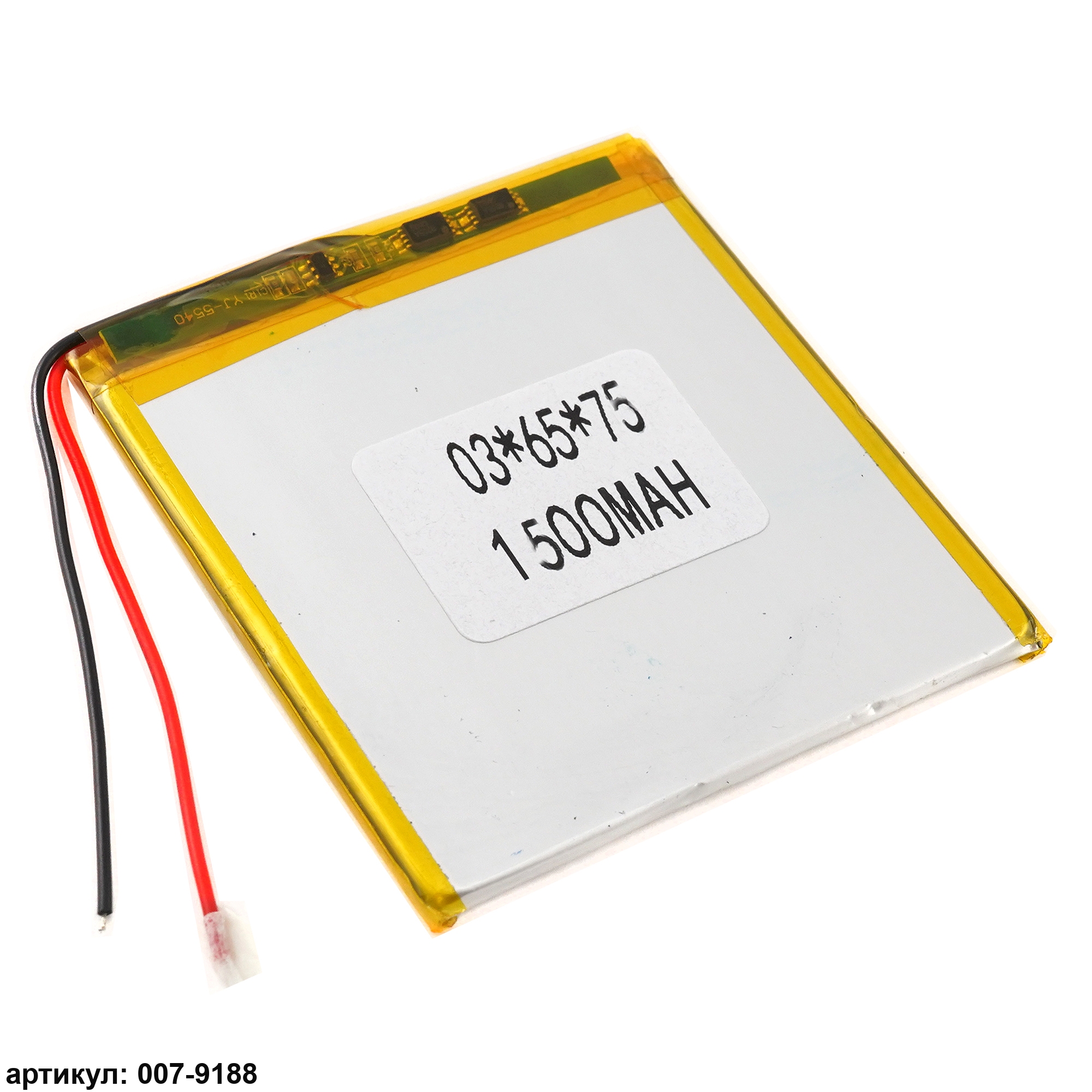 Аккумулятор 3.7v 1500mAh 75x65x3мм (2 pin)