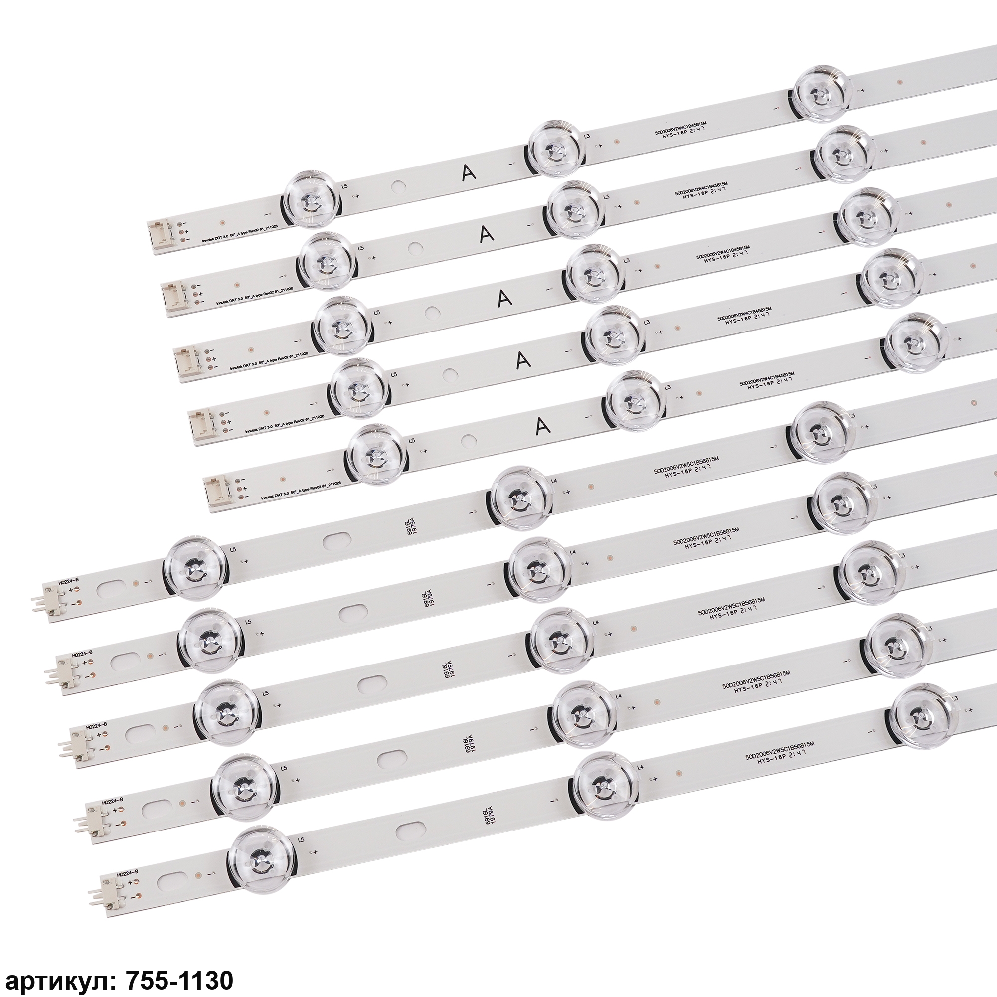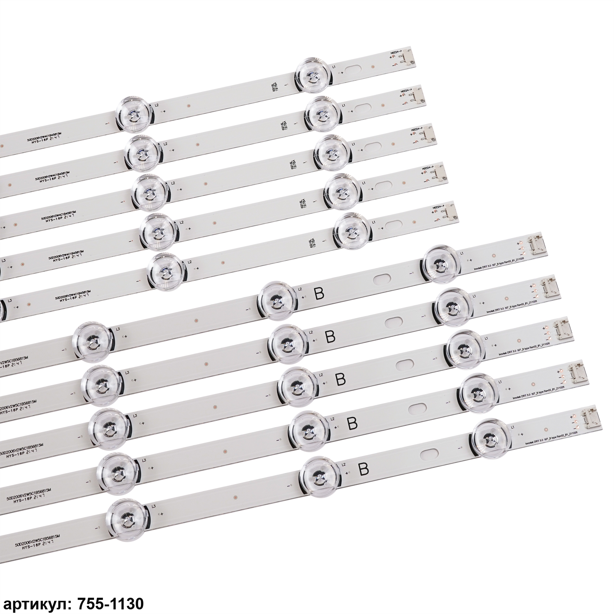 Комплект планок светодиодной подсветки для телевизора LG 50' / (9 led 6V 1027mm)Комплект включает в себя:- 5 планок LG Innotek DRT 3.0_50_A type Rev 02 (4 led)- 5 планок LG Innotek DRT 3.0_50_B type Rev 02 (5 led)Совместимые p/n: 6916L-1735A, 6916L-1736A, 6916L-1978A, 6916L-1979A, 6916L-1982A, 6916L-1983AПодходит для моделей телевизора: LG 50LB560V, 50LB561V, 50LF561V, 50LB570V, 50LB572V, 50LF580V, 50LB580V, 50LB650V, 50LF650V, 50LB652V, 50LF652V, 50LF653V, 50LB653V