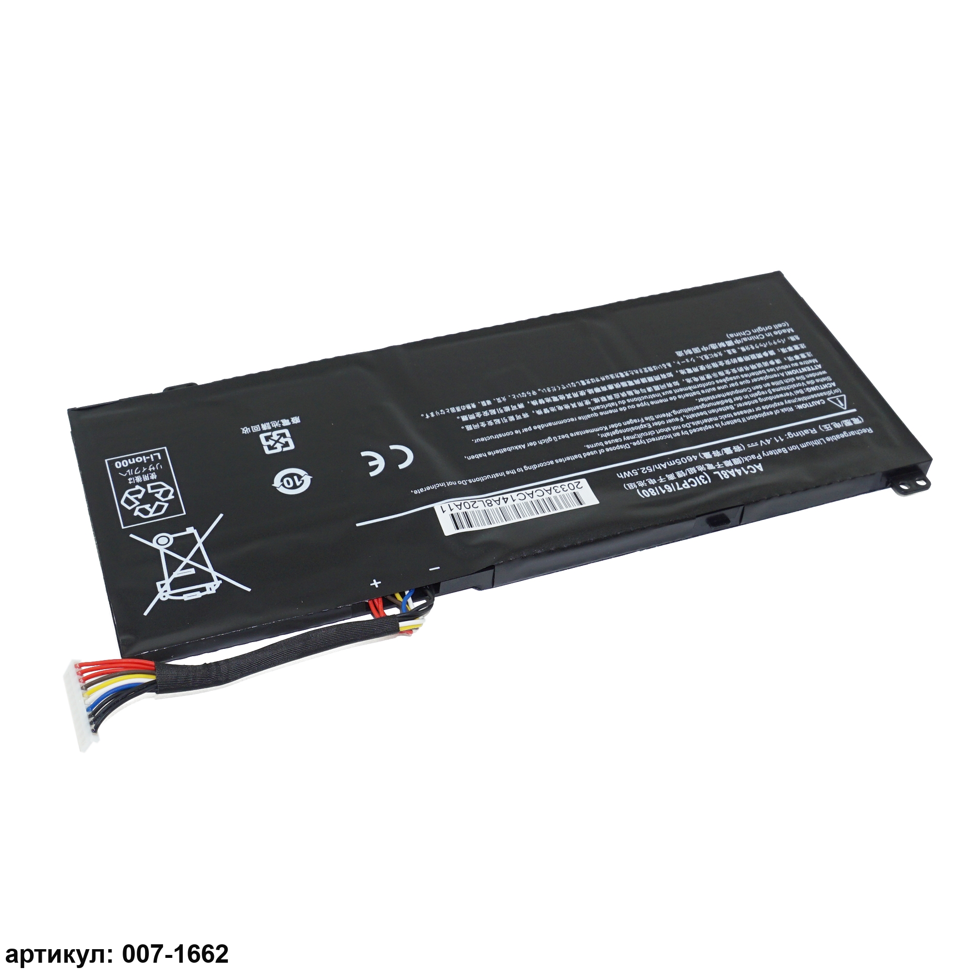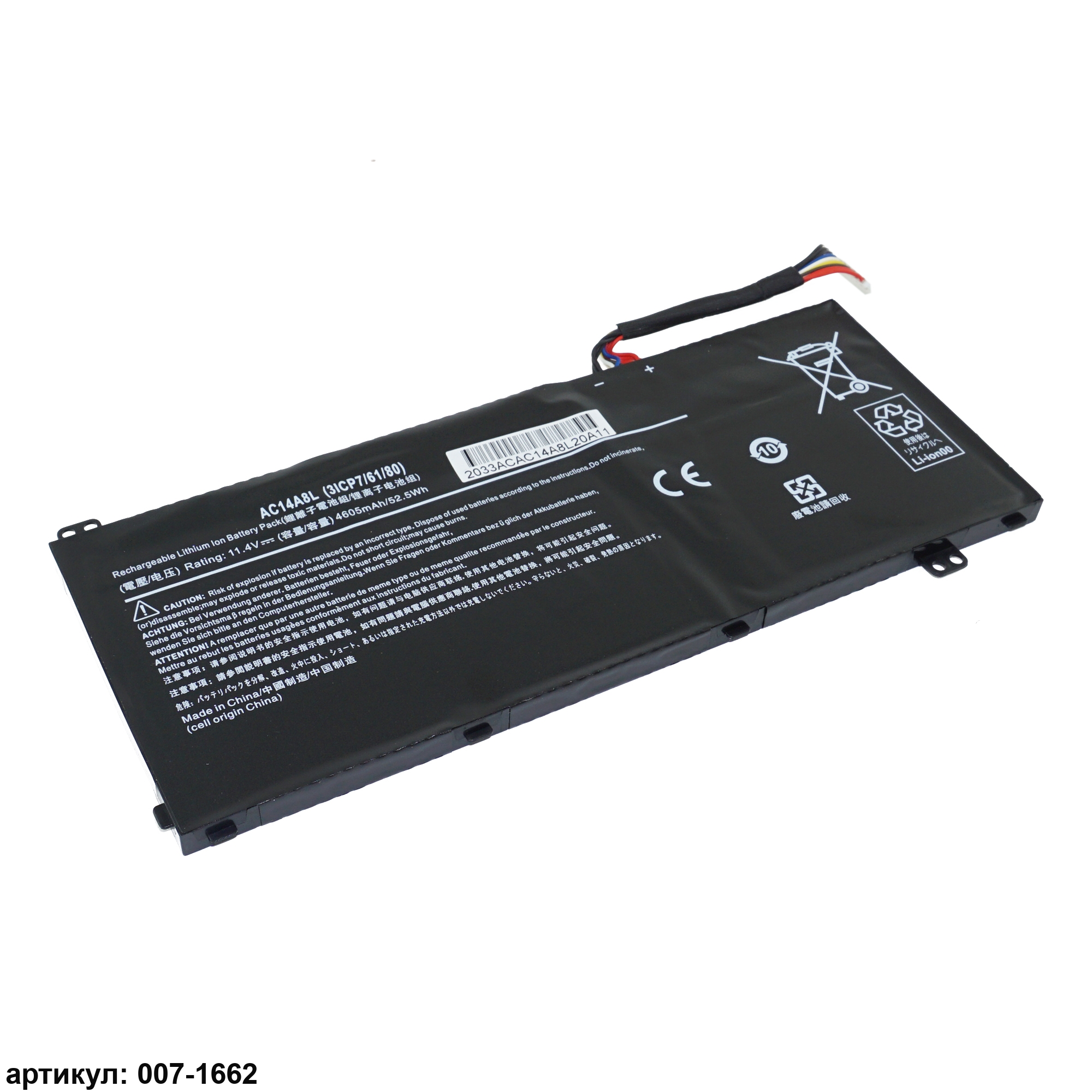 Подходит к сериям ноутбуков: Acer Aspire VN7-571, VN7-571G, VN7-591, VN7-591G, VN7-791, VN7-791G, VN7-591G-74SKСовместимые P/N: AC14A8L, 3ICP7/61/80, KT.0030G.001