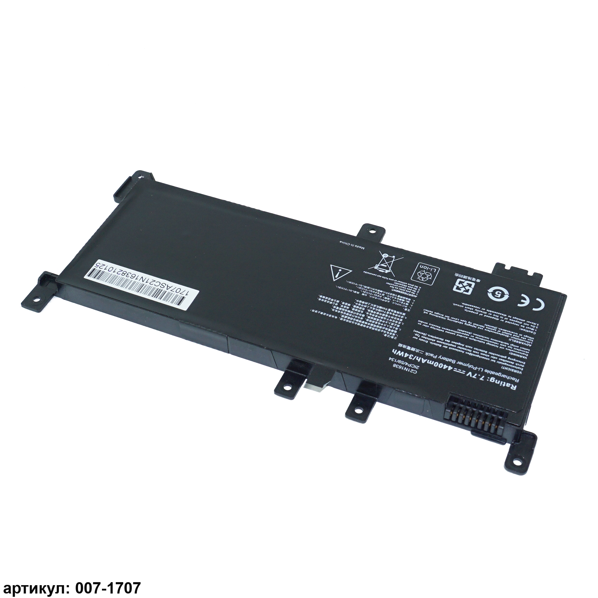 Подходит к сериям ноутбуков: Asus VivoBook X442UA, 14 X442UN, X442UR-1C, X442UQ-FA053T, X442UF-1C, X442UA-FA022T, X442UQ-1B, VivoBook 14 X442UQ-FA005T, 14 X442UR-FA023TСовместимые P/N: C21N1638, 0B200-02630000