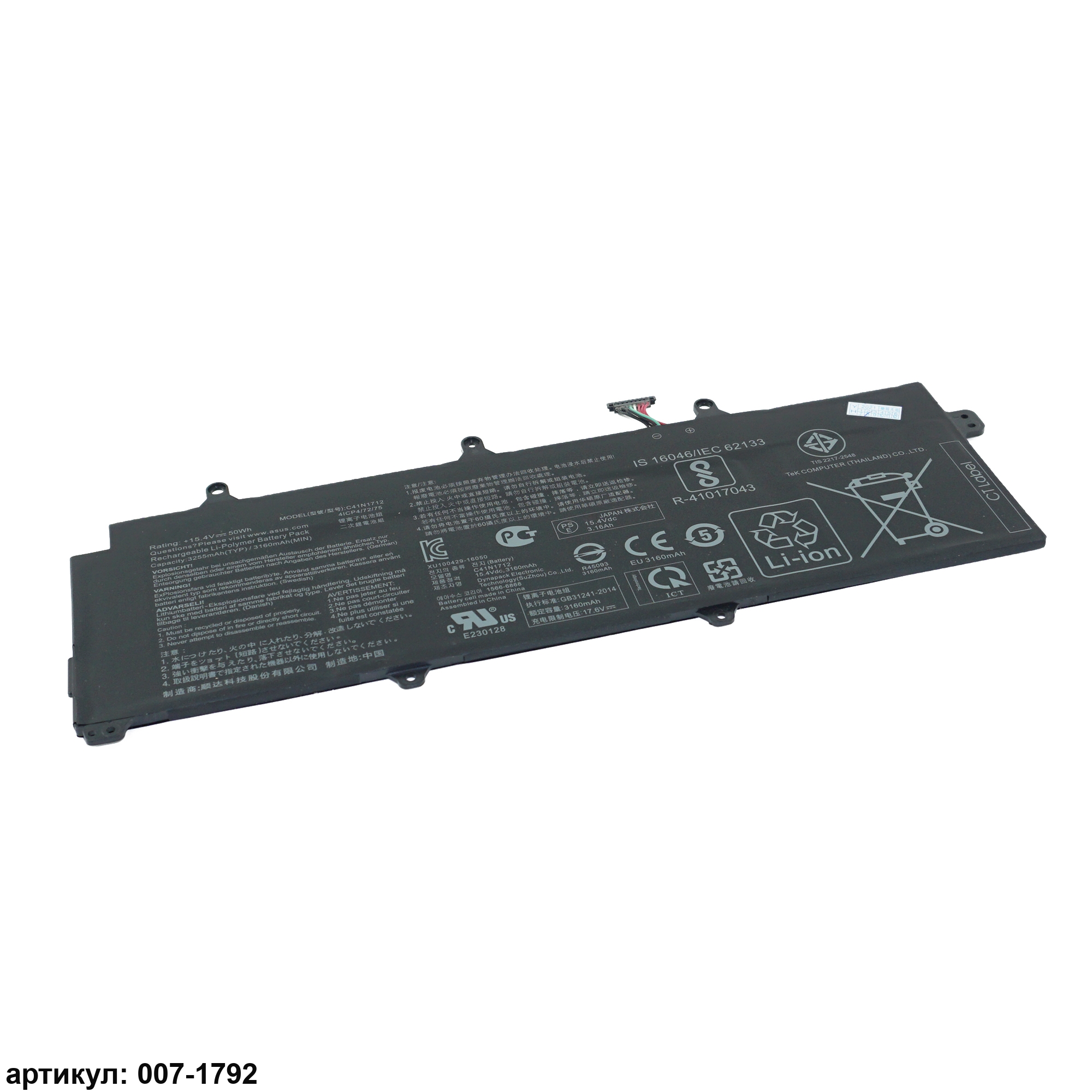 Совместимые P/N: C41N1712, 0B200-02380100, 4ICP4/72/75, C41PKC5, 0B200-02380200