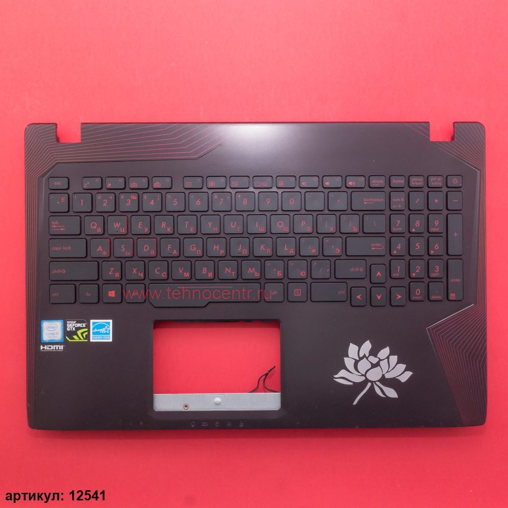 Клавиатура для ноутбука Asus GL553VD черная c черным топкейсом, с подсветкой (с цветком)