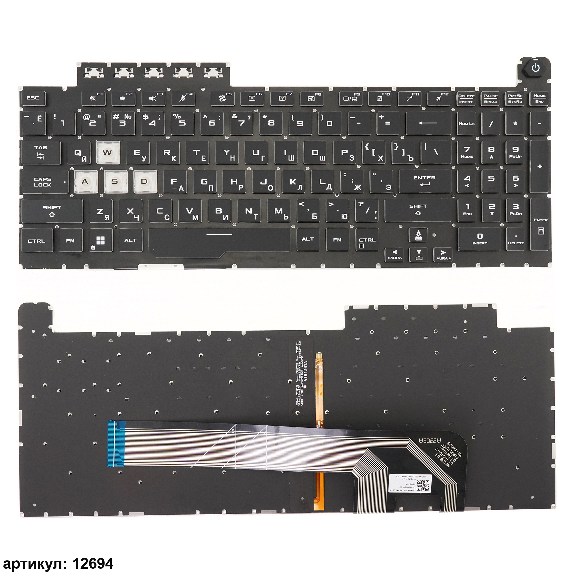 Клавиатура подходит к ноутбукам: Asus Tuf Gaming F15 FX506, FX506H, FX506LI, FX506LH, Tuf F17 FX706, FX706LI, FA706