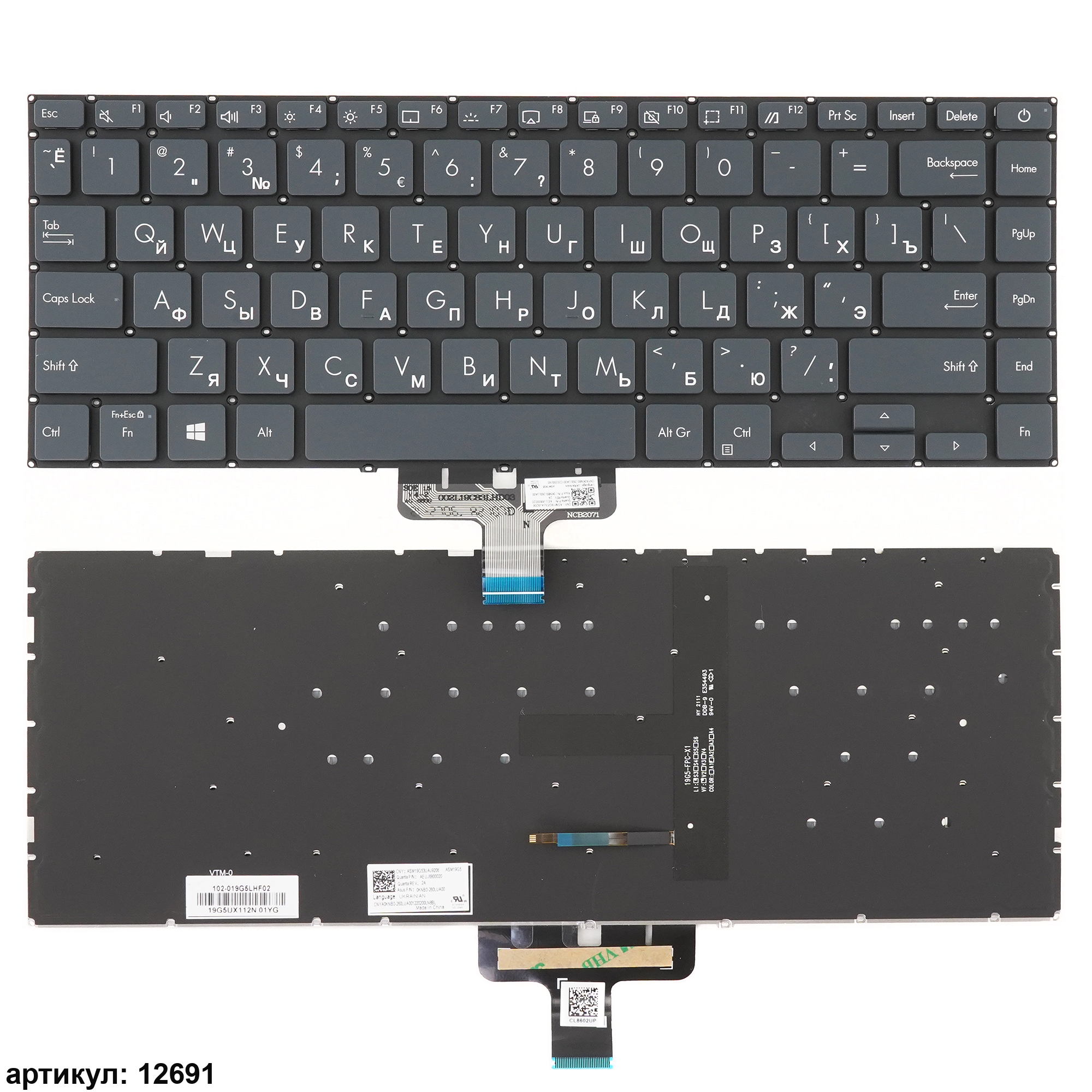 Клавиатура подходит к ноутбукам: Asus Zenbook UX435, UX435E, UX435EA, UX435EGСовместимые P/n: 0KNB0-210FUS00, ASM19G7, AEUJ6U01010
