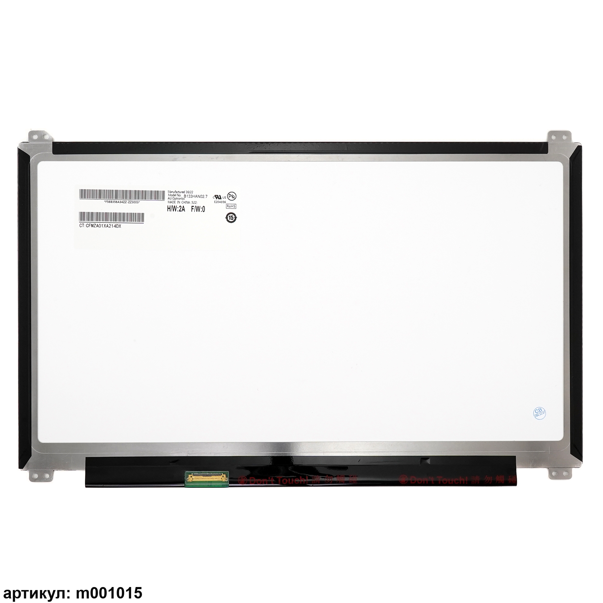 Матрица тонкая (Slim), уши вверх/вниз. Разъем расположен внизу слева на внешней плате.Тип матрицы: AHVAСовместимые модели: N133HCE-EN1, B133HAN02.1, B133HAN02.7