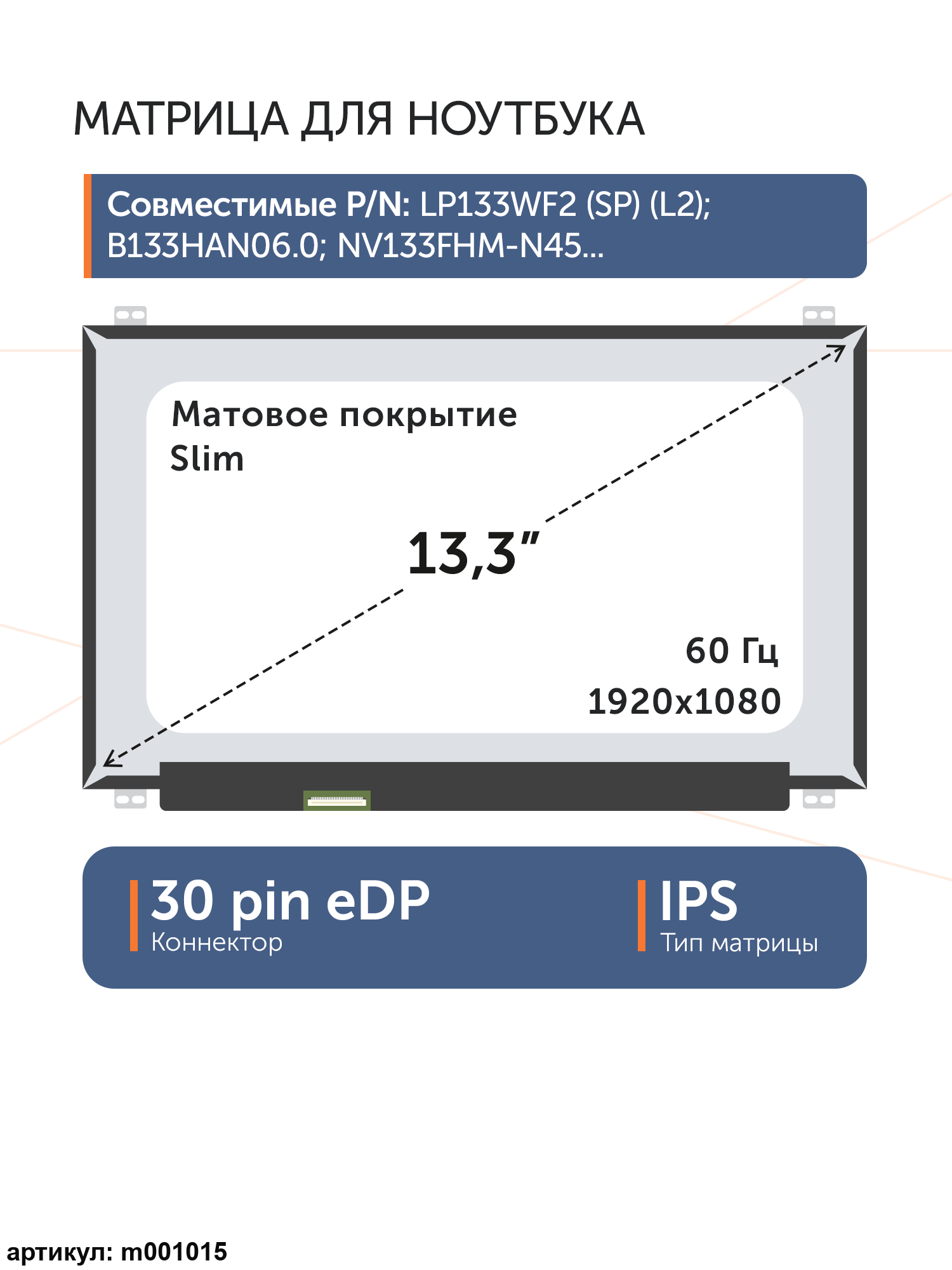 Совместимые модели: N133HCE-EN1, B133HAN02.1, B133HAN02.7