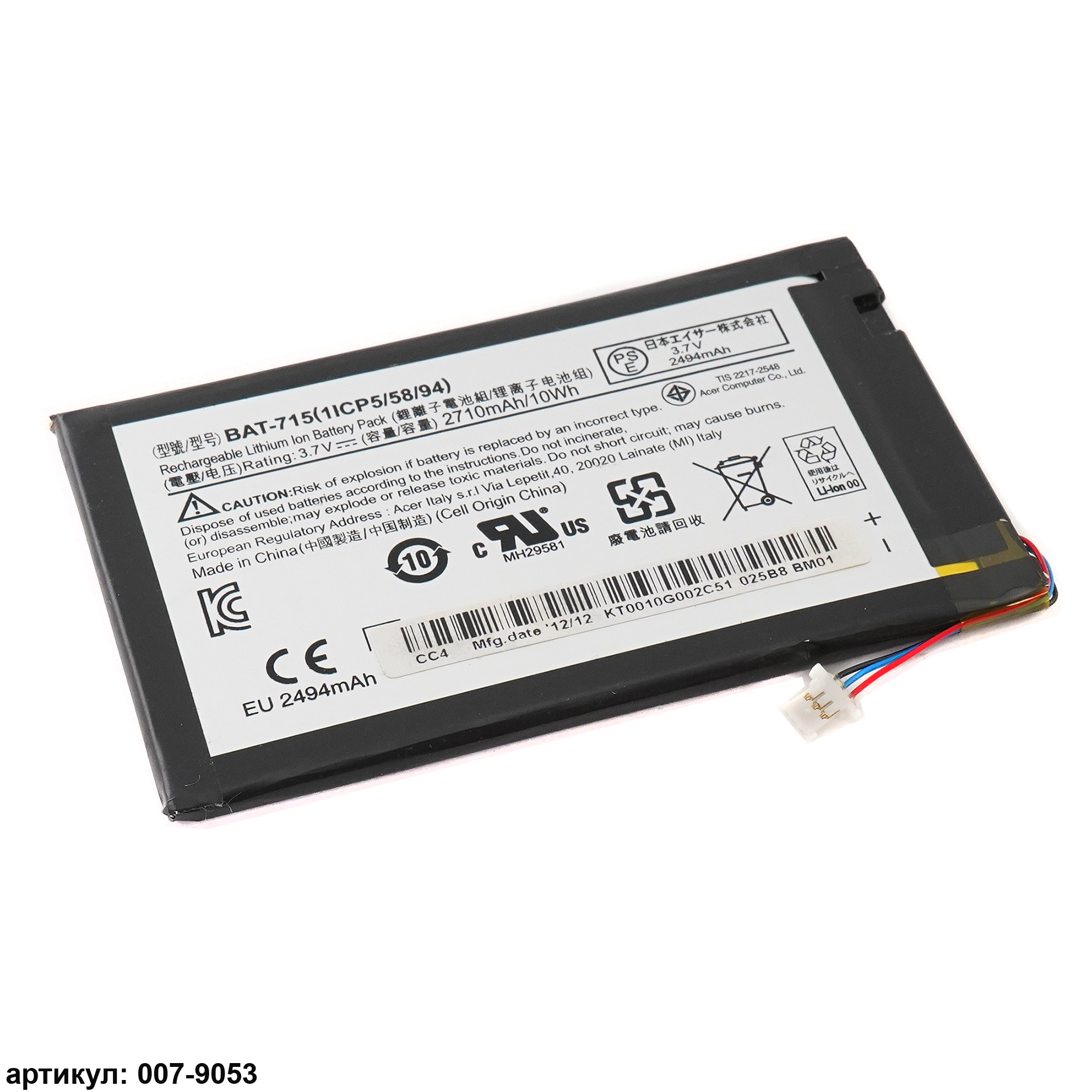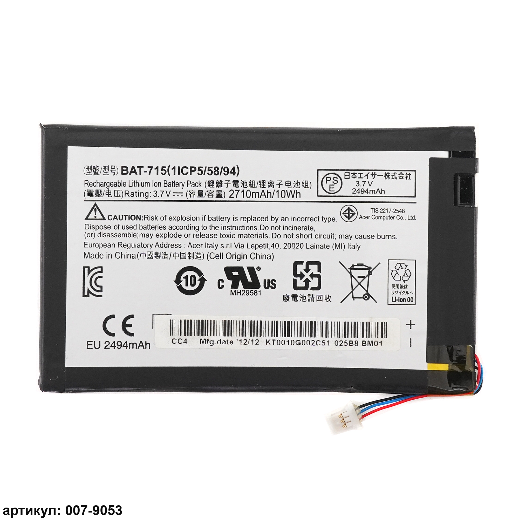 Совместимые P/N: BAT-715 (1ICP5/58/94), CS-ACB810SL, KT.0010G.002D