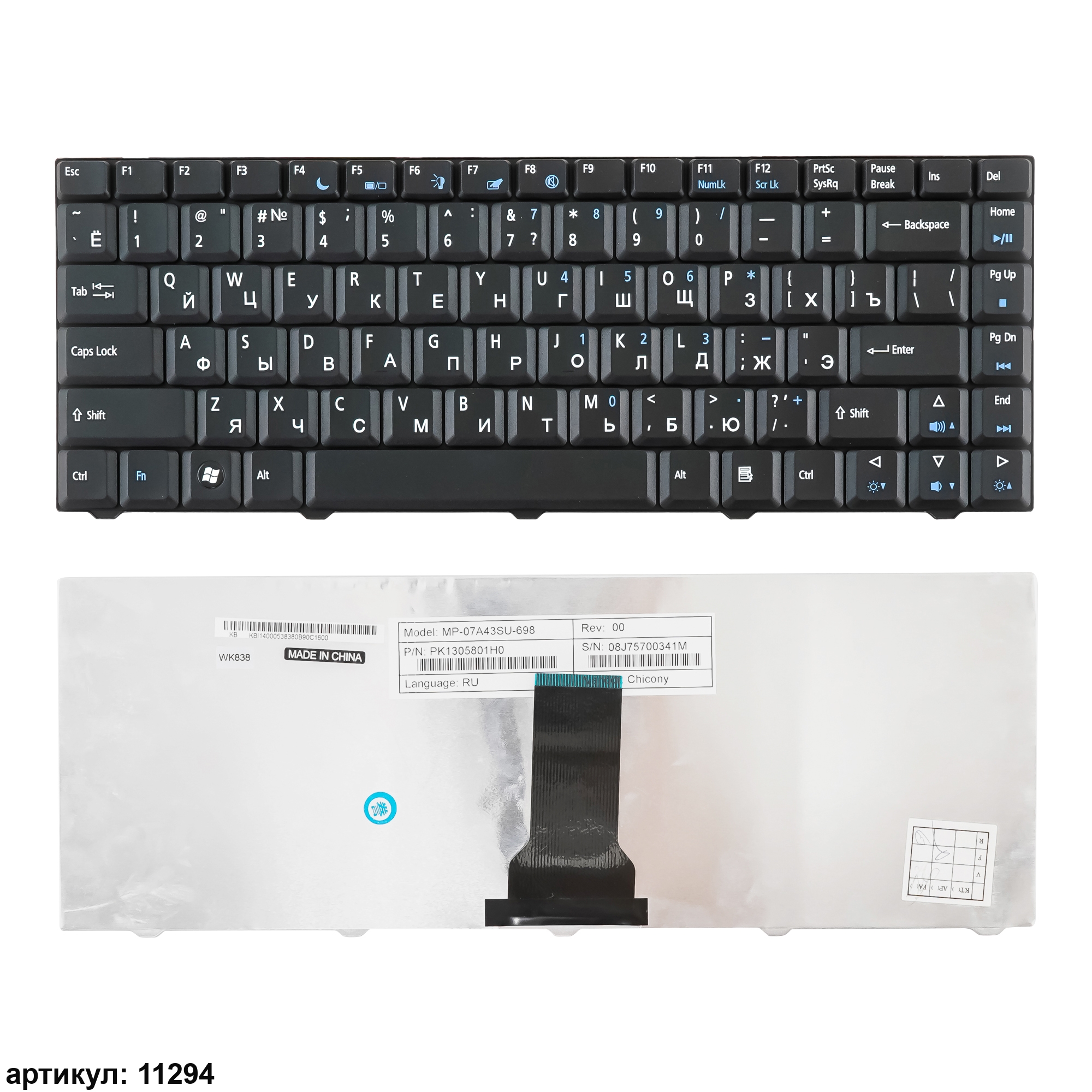 Клавиатура подходит к ноутбукам: eMachines E520, E700, E720, D500, D520, D700, D720, M575, Acer Aspire 4332, 4732, 4732ZСовместимые P/n: PK1305801H0, PK1305801L0, MP-07A43SU-698, MP-07A46SU-698, KB.I1400.053