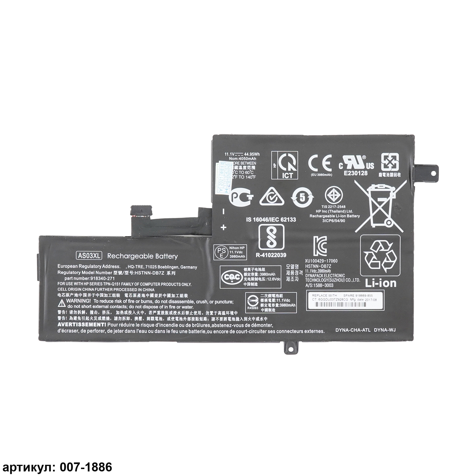 Совместимые P/N: AS03XL, IB7W, ASO3XL, 918669-855, 918340-1C1, 484170-001