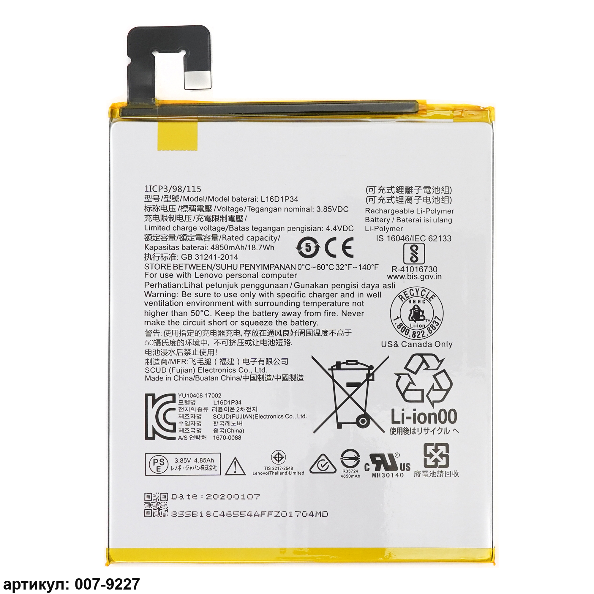 Совместимые P/n: L16D1P34, SB18C15125, SB18C15126, YU10624-17002