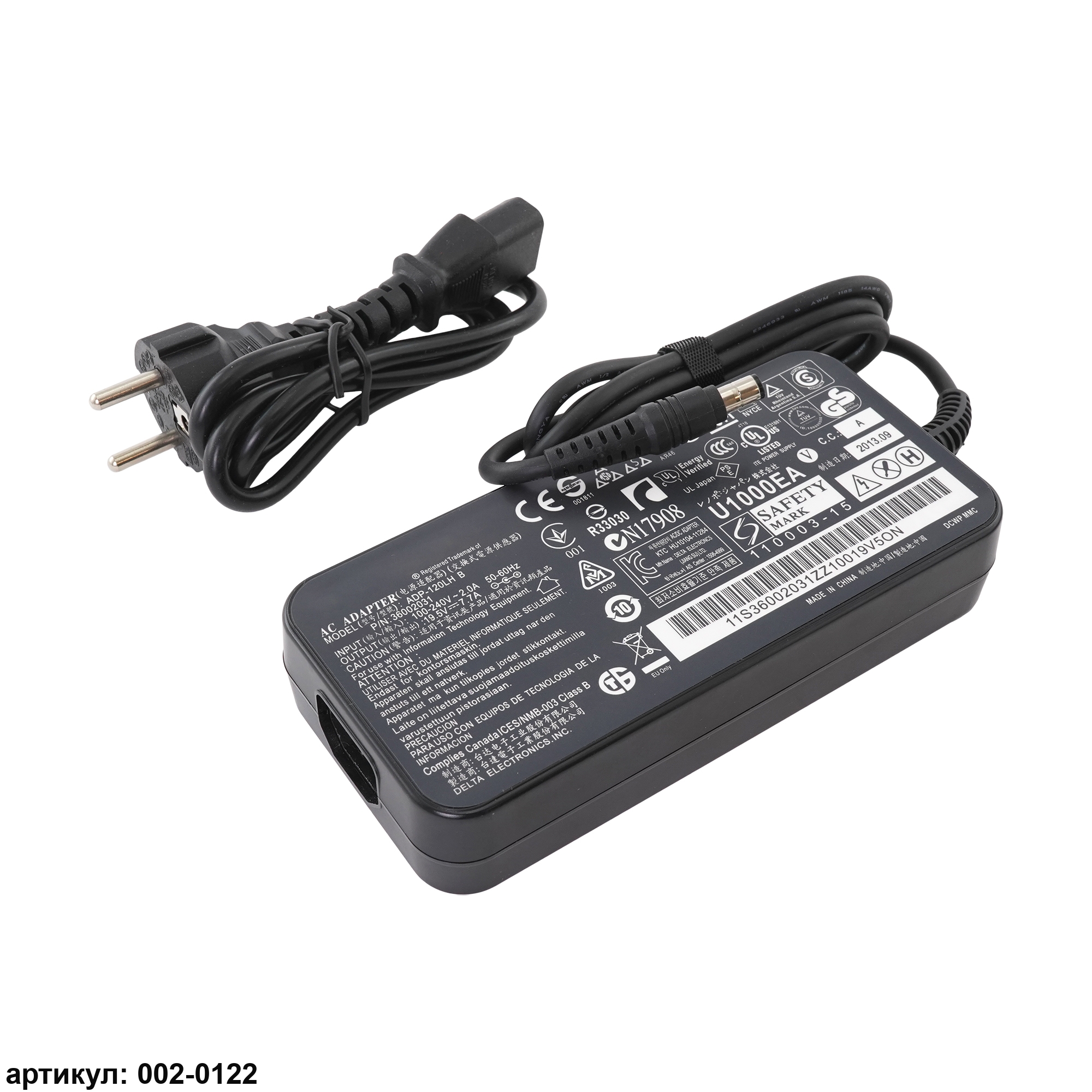 На его корпусе указано напряжение 19В, мощность 6,32А.