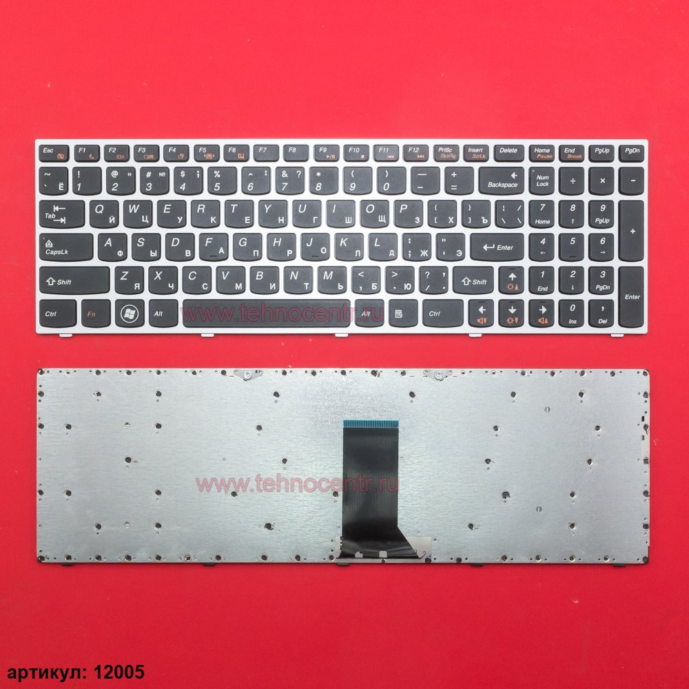 Клавиатура для ноутбука Lenovo B5400, M5400 черная с серебристой рамкой