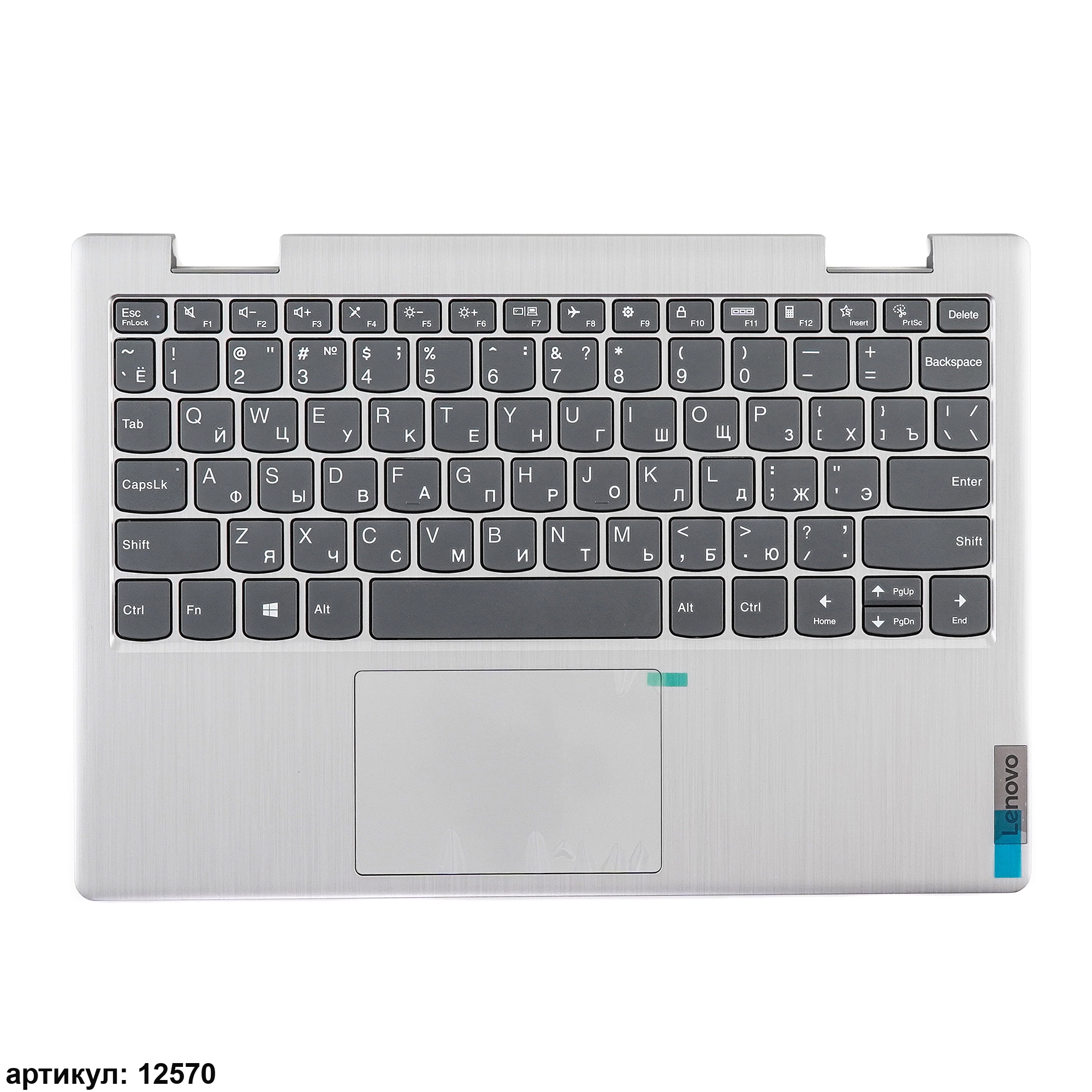 Клавиатура для ноутбука Lenovo Flex 3-11IGL05 серая с серебристым топкейсом