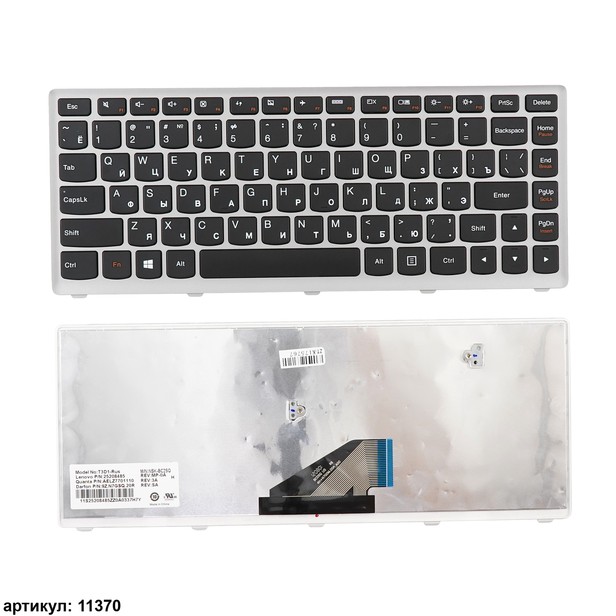 Обязательно сравнивайте Вашу клавиатуру с представленной на фотографии: направление и приблизительная длина шлейфа, крепления, размер кнопки Enter. Одинаковые модели ноутбуков могут использовать разные модификации клавиатур. Даже если на сайте модель, парт-номер стоят в совместимых, она может не подойти вам.