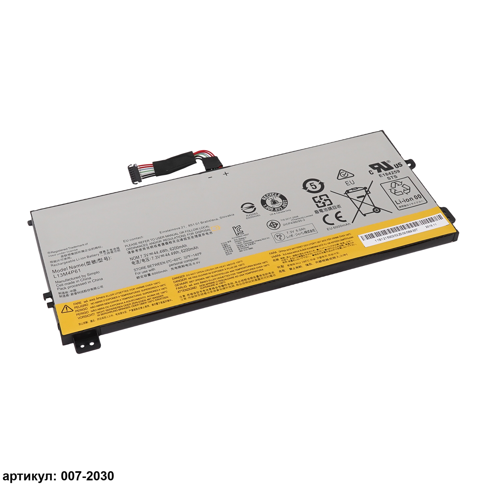 Подходит к сериям ноутбуков: Lenovo ThinkPad Edge 15, Flex 2 Pro-15Совместимые P/N: 121500253, 2ICP3/86/94-2, L13M4P61, L13S4P61, L13L4P61