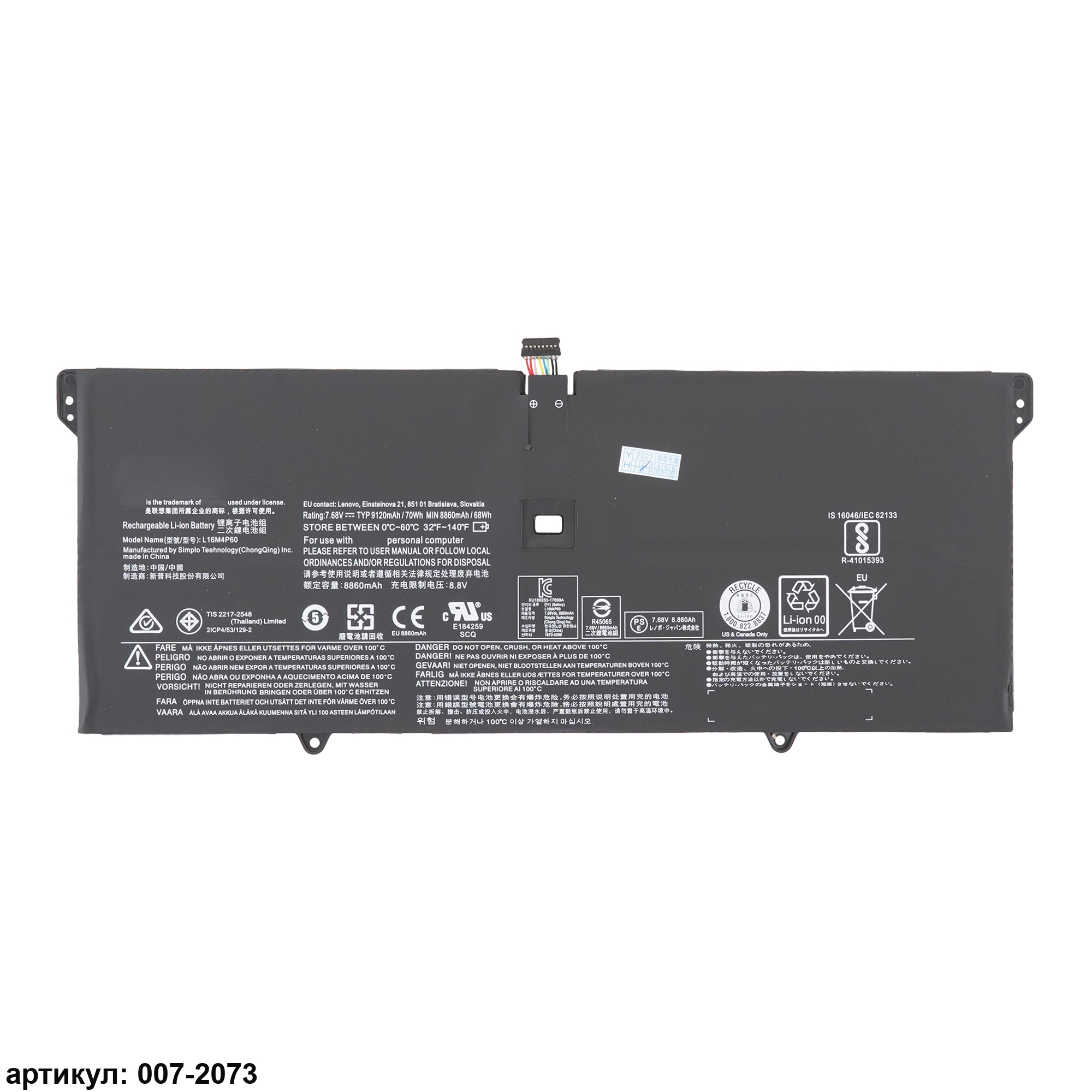 Подходит к сериям ноутбуков: Lenovo YOGA 6 Pro-13IKB, YOGA 920-13IKBСовместимые P/N: L16M4P60, 2ICP4/53/129-2, L16C4P61, 5B10N01565, 5B10N17665