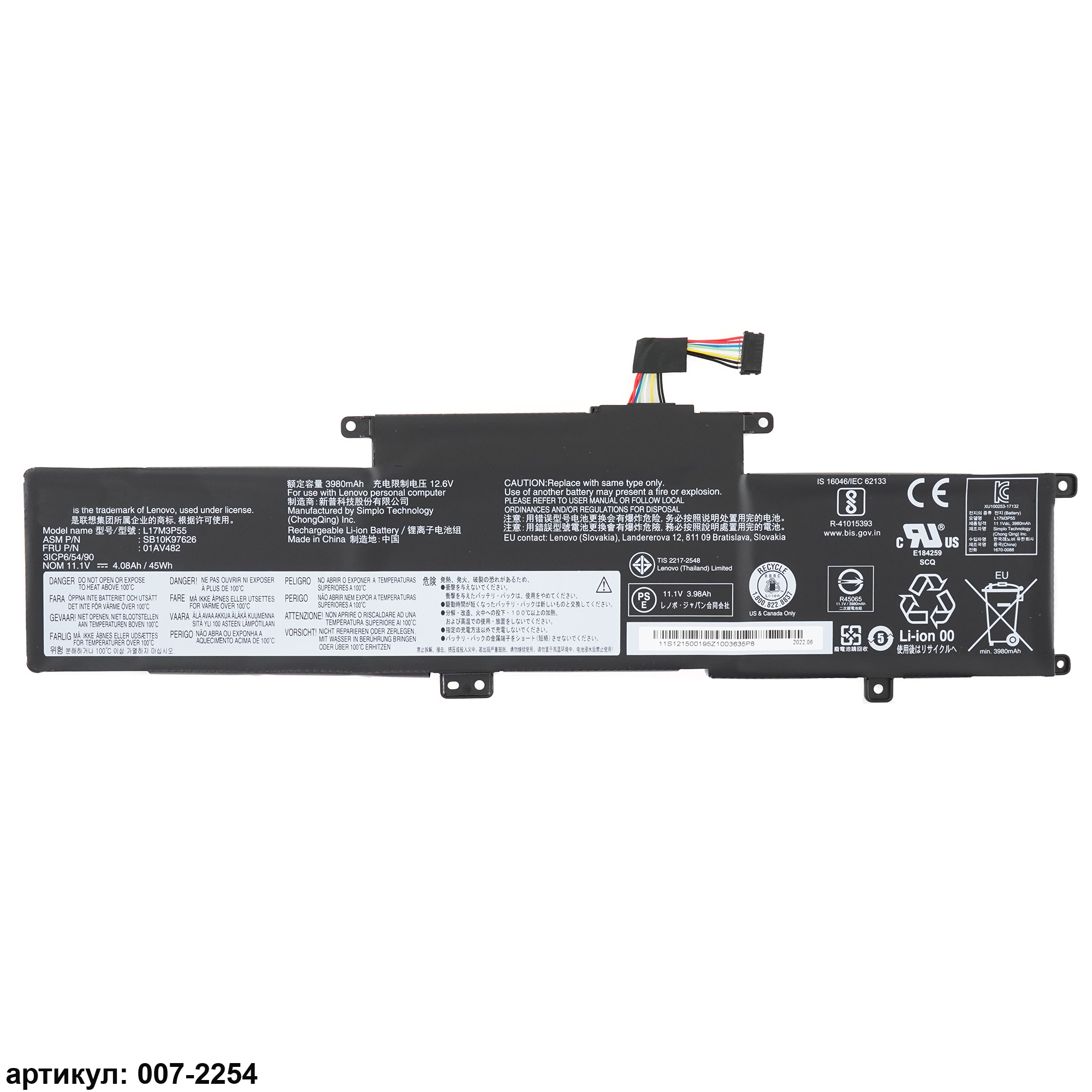 Совместимые P/N: 01AV481, 5B10W13892, 01AV482, 5B10W13893, 01AV483, L17L3P53, SB10K97625, L17M3P55