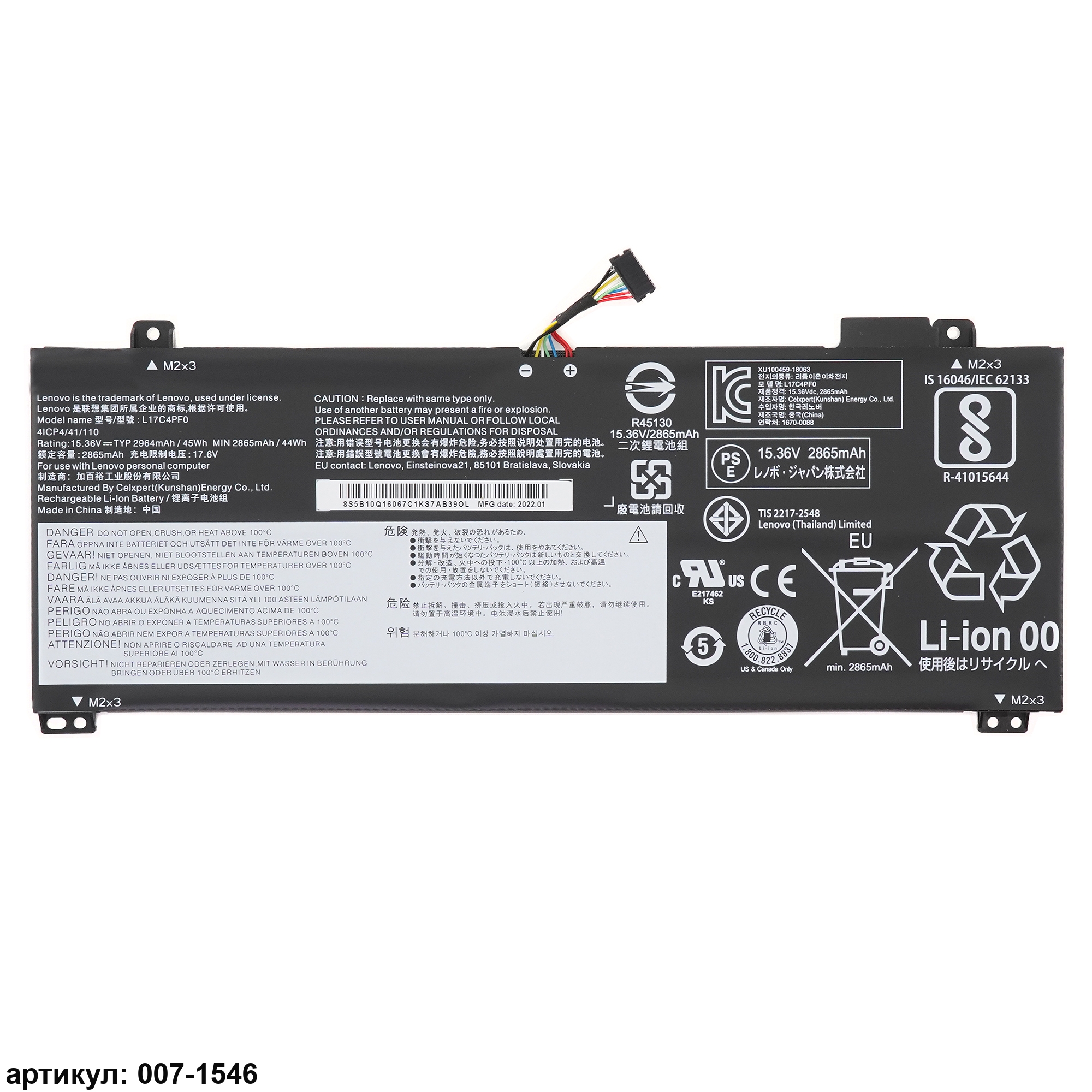 Подходит к сериям ноутбуков: Lenovo Ideapad S530-13IWL, S530-13IMLСовместимые P/N: L17M4PF0, 5B10W67314, 5B10R38649, 5B10R38650, 5B10W67405, L17C4PF0, SB10W67316, SB10W67414