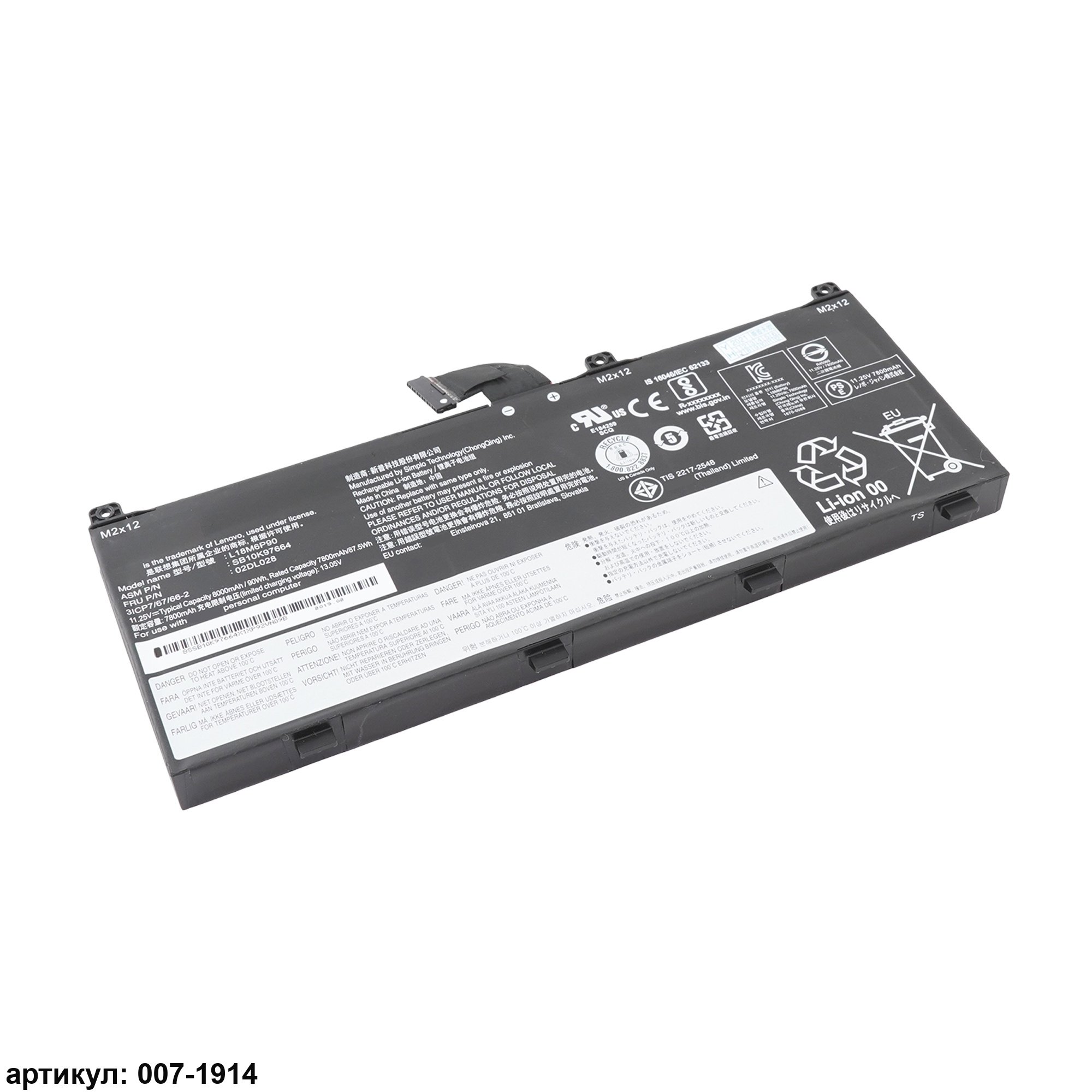 Подходит к сериям ноутбуков: Lenovo ThinkPad P53Совместимые P/N: L18M6P90, 02DL029, 5B10W13902, 02DL028, 5B10W13901