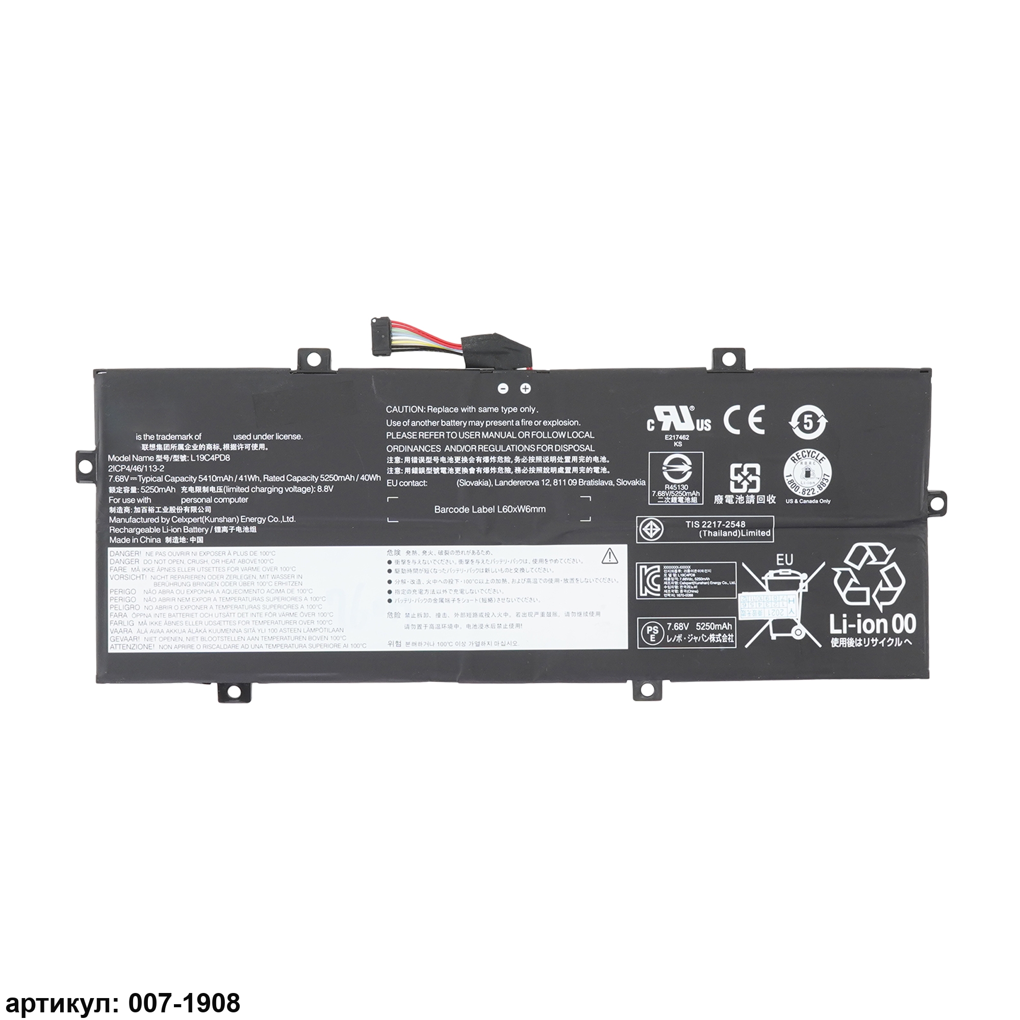 Совместимые P/N: L19M4PD8, 5B10X87839, L19C4PD8, 5B10X87836