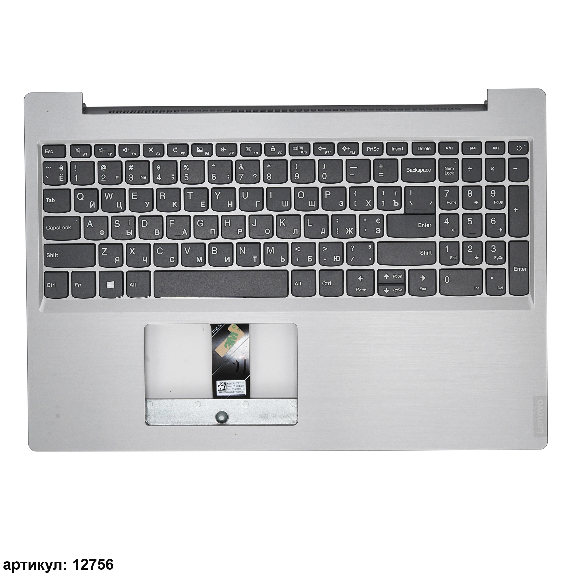 Клавиатура для ноутбука Lenovo L340-15IWL серая с серебристым топкейсом, без тачпада