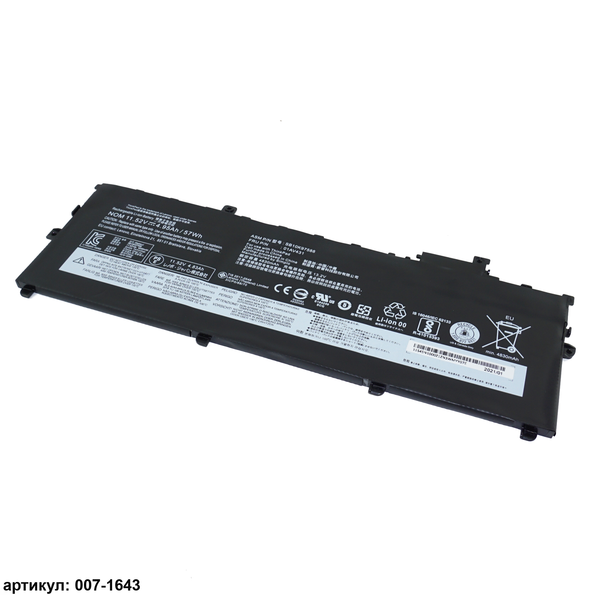 Совместимые P/N: SB10K97586, 01AV429, 01AV430, 01AV431, 01AV494, SB10K97587, SB10K97588