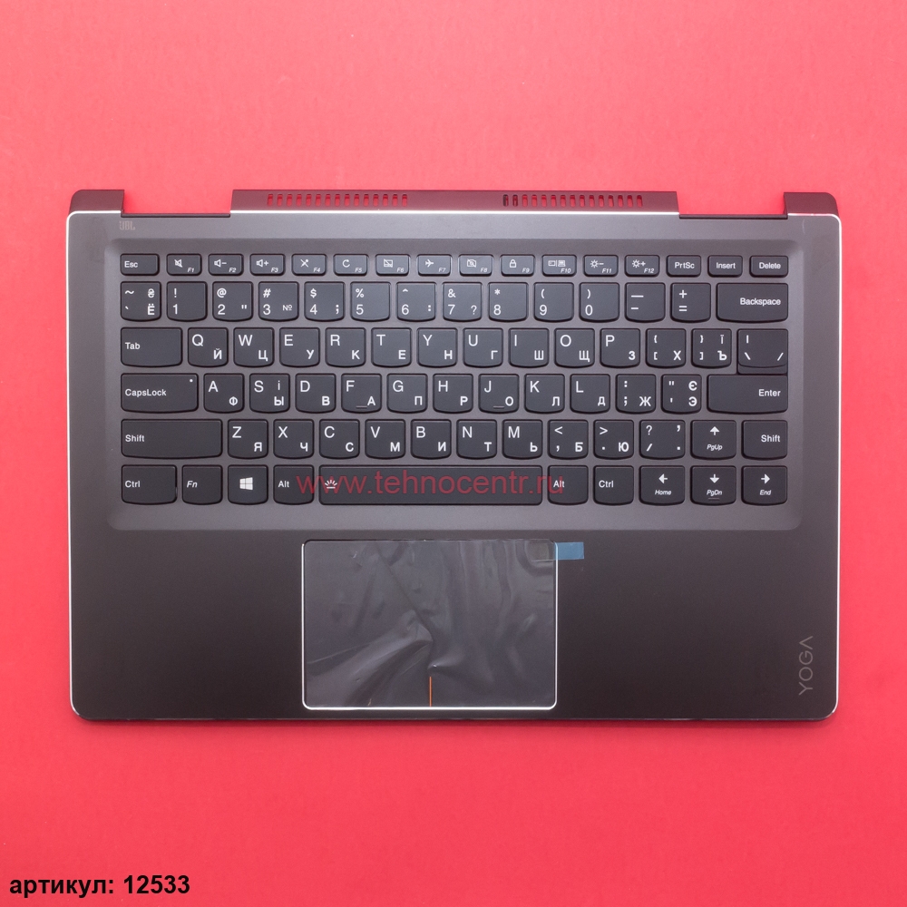 Клавиатура для ноутбука Lenovo Yoga 710-14ISK чёрная с темно-серым топкейсом, с подсветкой