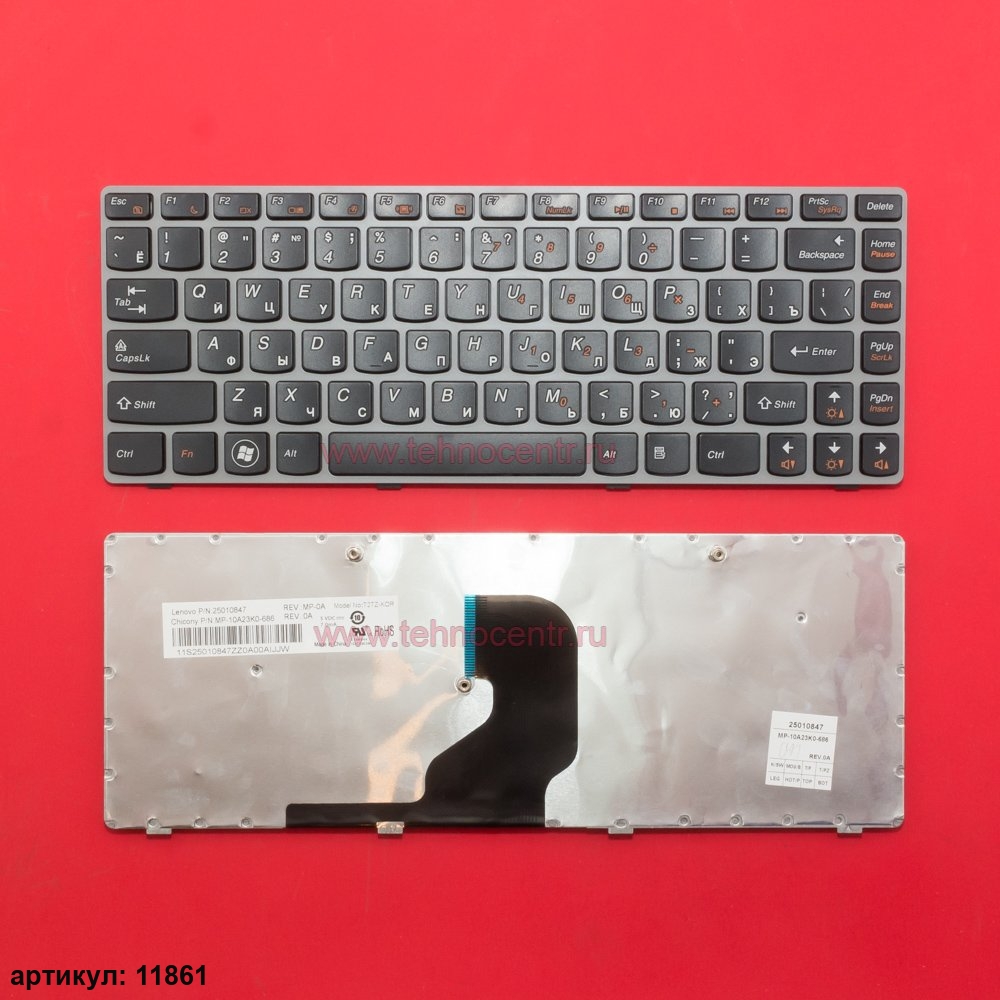Клавиатура для ноутбука Lenovo Z450, Z460, Z460A черная с серой рамкой
