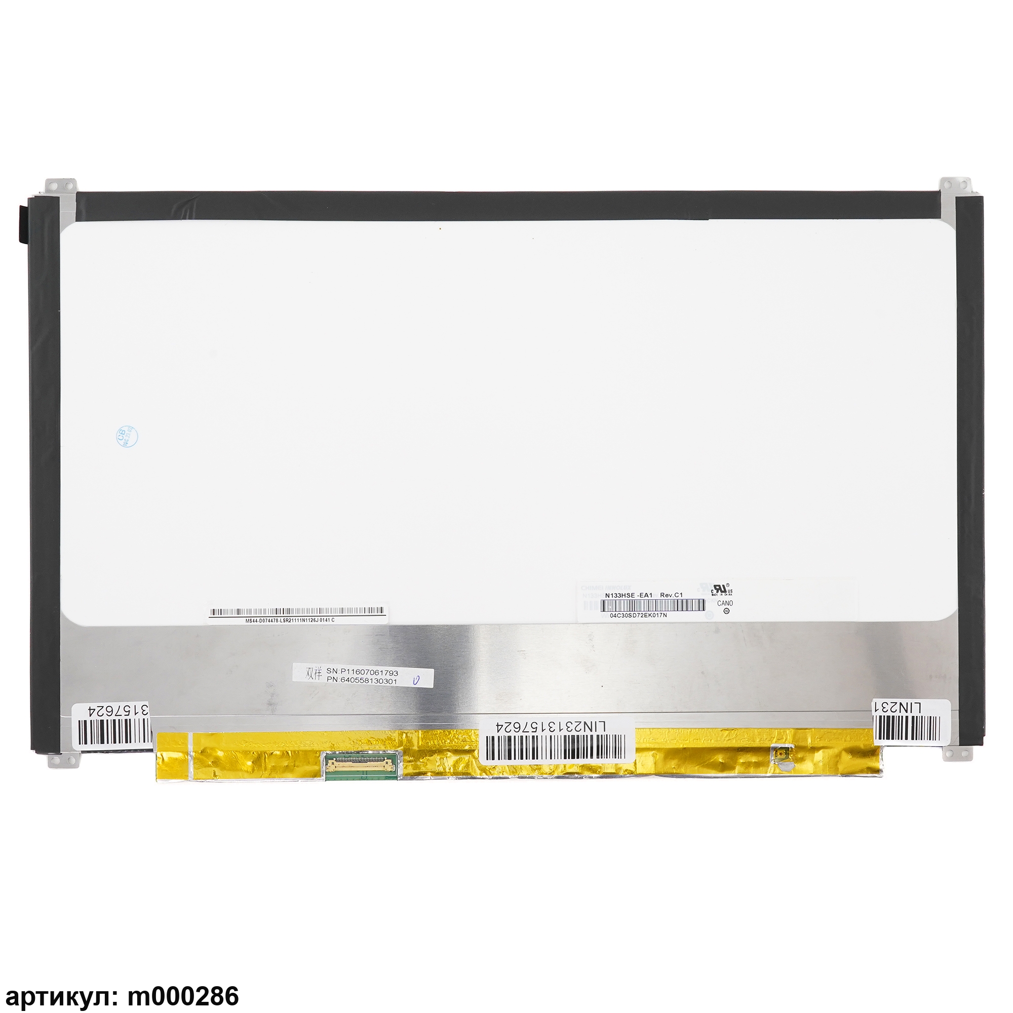 Матрица стандарт (Slim), крепления расположены сверху и снизу.Разъем подключения расположен слева внизу на внешней плате.Совместимые модели: N133HSE-EA1 Rev.C1, N133HSE-EB3 Rev.C1