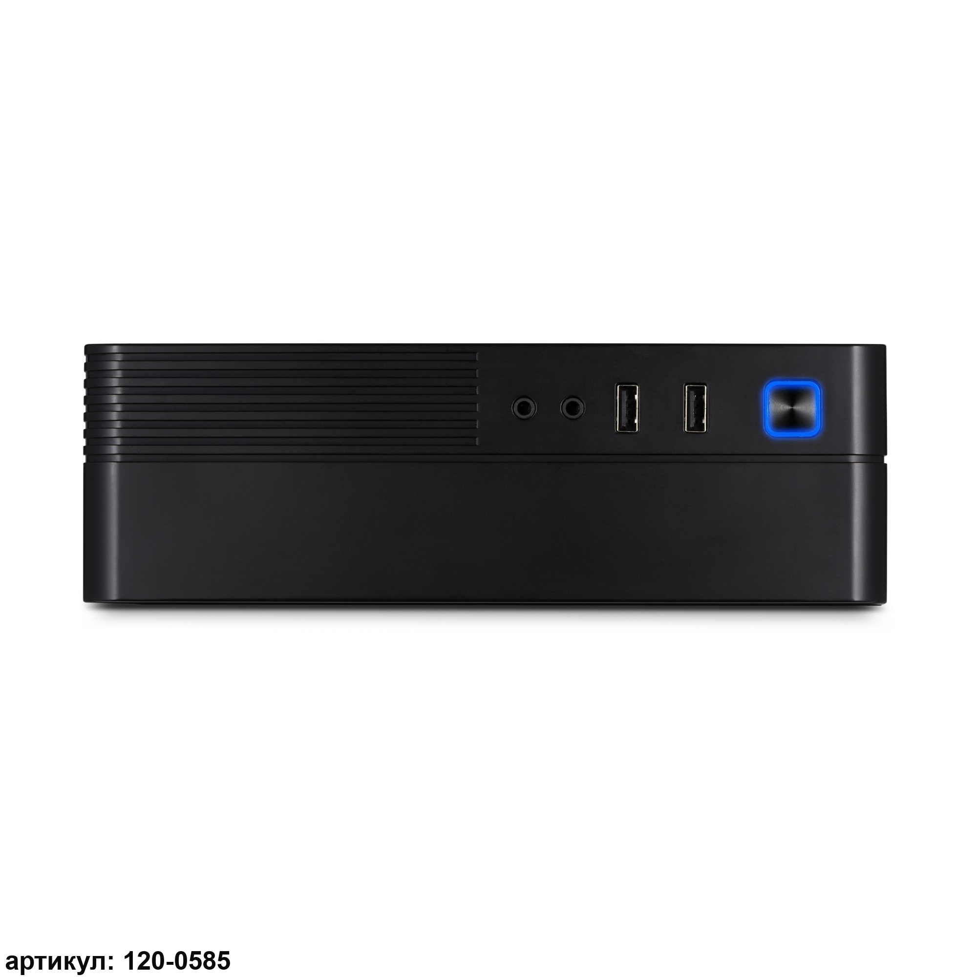 • Вертикально ориентированный корпус выполнен из металла и пластика черного цвета. На передней панели имеются разъемы для наушников и микрофона, а также USB, что удобно и функционально.