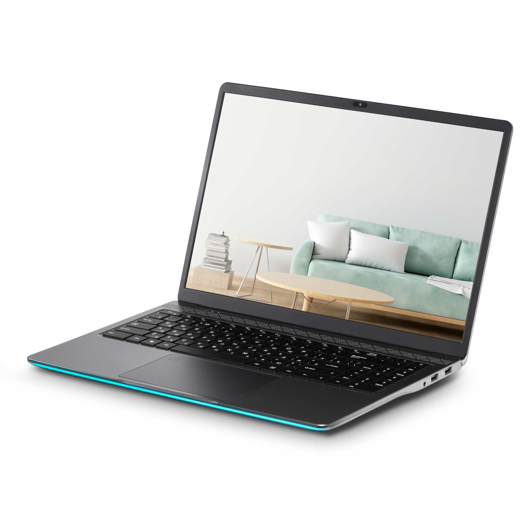 Ноутбук AzertyRB-1651 – прекрасный цифровой компаньон и оптимальное решение для работы и учебы. Раскрыв аппарат легким движением одной руки и включив его, в какой-то момент вы попадете под гипноз «неоновой» полосы его подсветки. Благодаря ей ноутбук выглядит так, словно сошел с витрины модного бутика или обложки глянцевого журнала. Но данный элемент несет собственную функциональную нагрузку – он деликатно подсвечивает пространство на столе, а также улучшает психологический комфорт при работе в темное время суток.