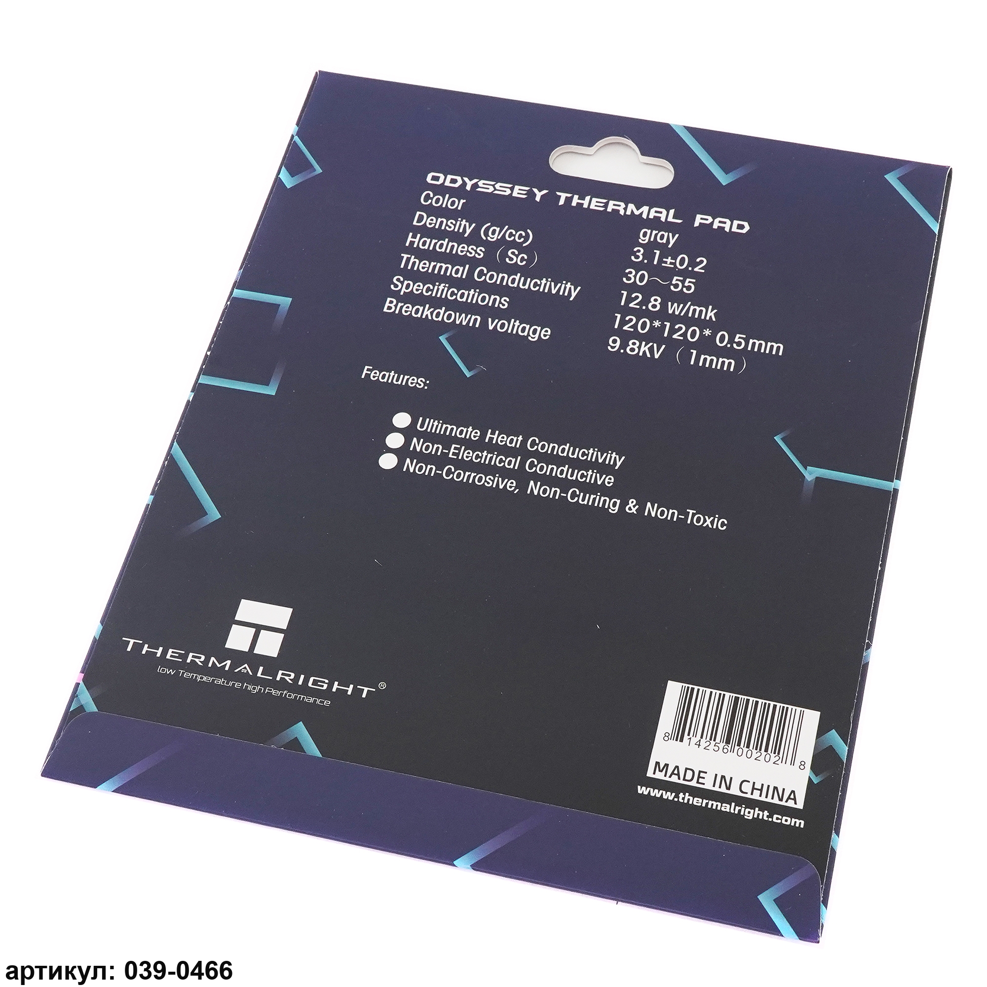 Термопроводящая прокладка размером 12 на 12 см и толщиной 0,5 миллиметра используется для передачи тепловой энергии от греющихся элементов (видеочипов, модулей памяти, процессоров и т. п.) на радиатор системы охлаждения. Термпопрокладка эластична, легко принимает любую форму и скрадывает элементы неровности двух поверхностей. Следует иметь в виду, что термопрокладки бывают разной толщины и обладают разной теплопроводностью и для каждого конкретного случая надо подбирать свою. Эффективность работы термопрокладки зависит от теплопроводности. Чем выше теплопроводность, тем лучше работает прокладка. В данном случае теплопроводность составляет 12.8 Вт/(м*К)