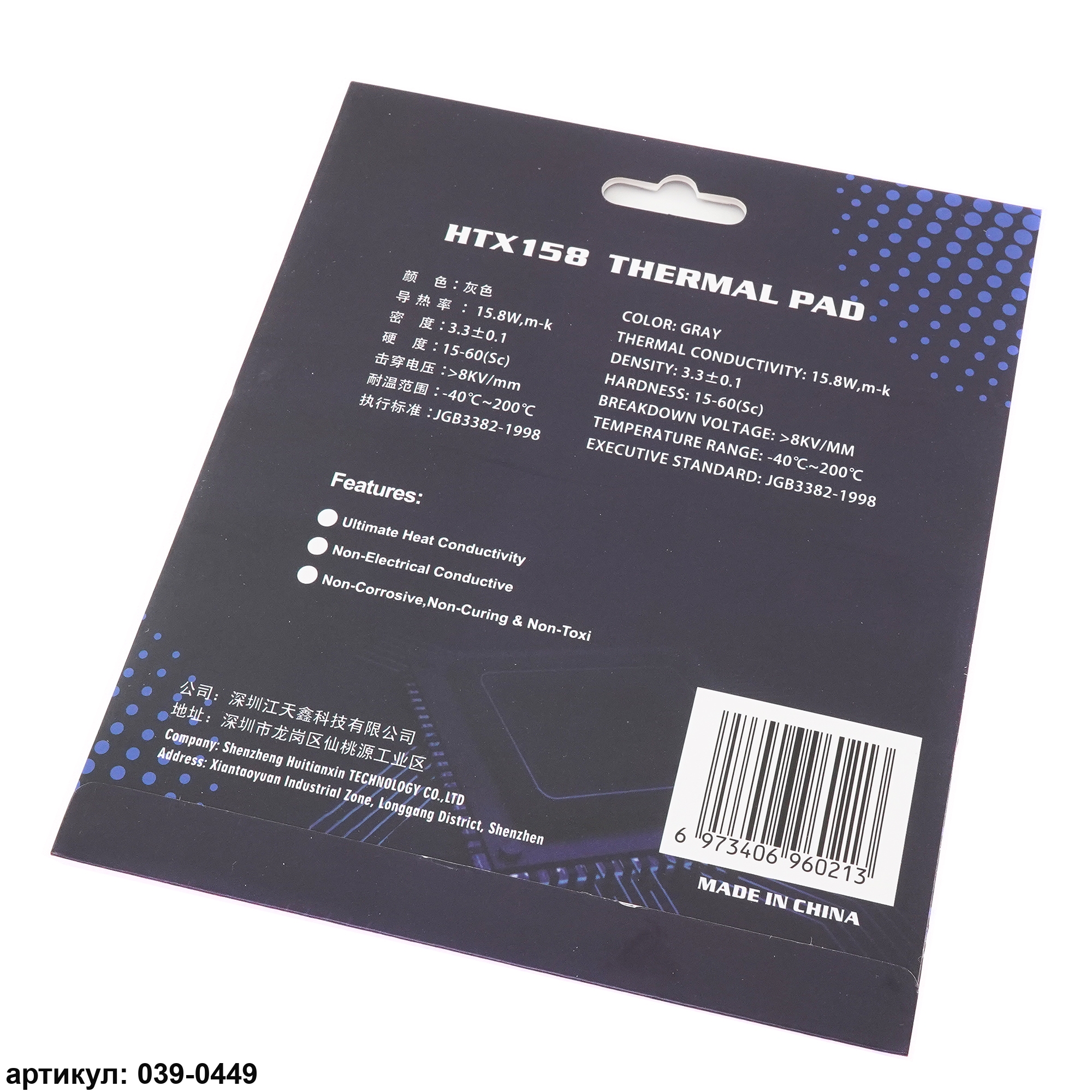 Термопрокладка 120x120х1 мм Hutixi HTX158 Thermal Pad 15.8 Вт/(м*К)