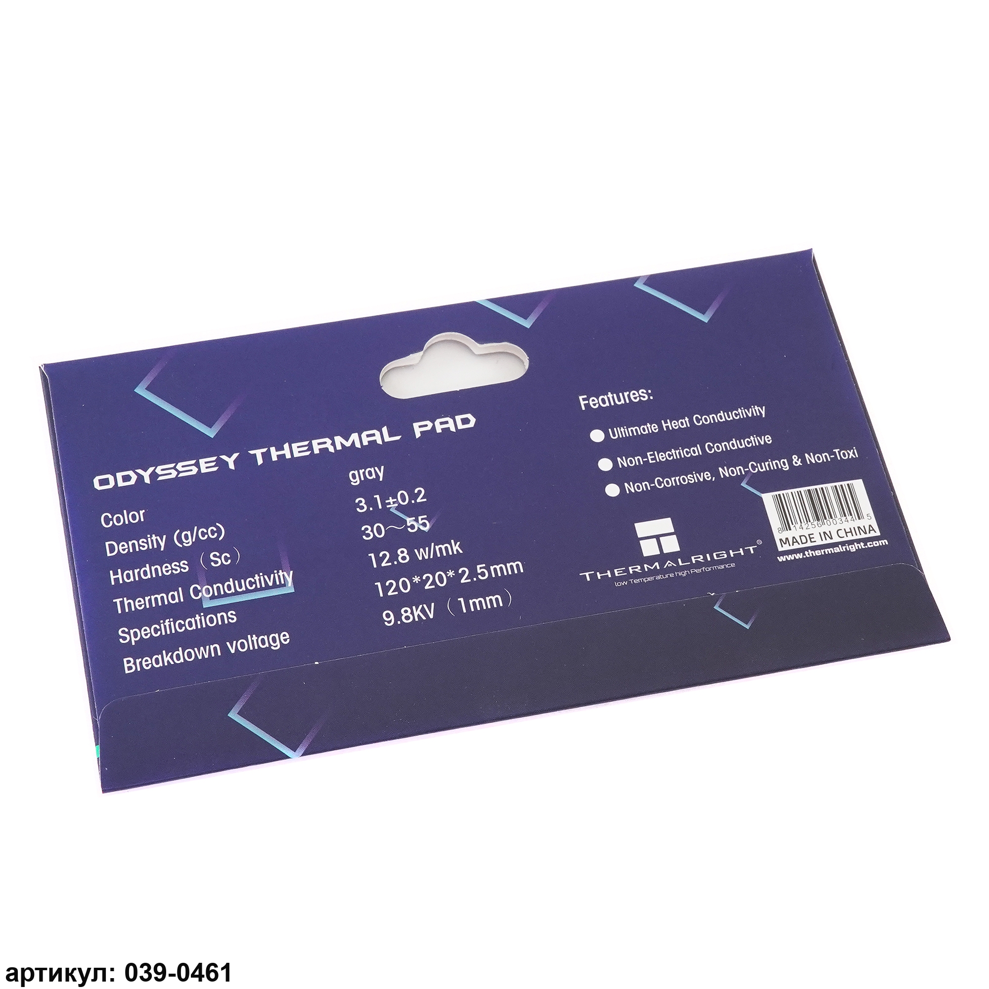 Термопроводящая прокладка размером 12 на 2 см и толщиной 2,5 миллиметра используется для передачи тепловой энергии от греющихся элементов (видеочипов, модулей памяти, процессоров и т. п.) на радиатор системы охлаждения. Термпопрокладка эластична, легко принимает любую форму и скрадывает элементы неровности двух поверхностей. Следует иметь в виду, что термопрокладки бывают разной толщины и обладают разной теплопроводностью и для каждого конкретного случая надо подбирать свою. Эффективность работы термопрокладки зависит от теплопроводности. Чем выше теплопроводность, тем лучше работает прокладка. В данном случае теплопроводность составляет 12.8 Вт/(м*К)
