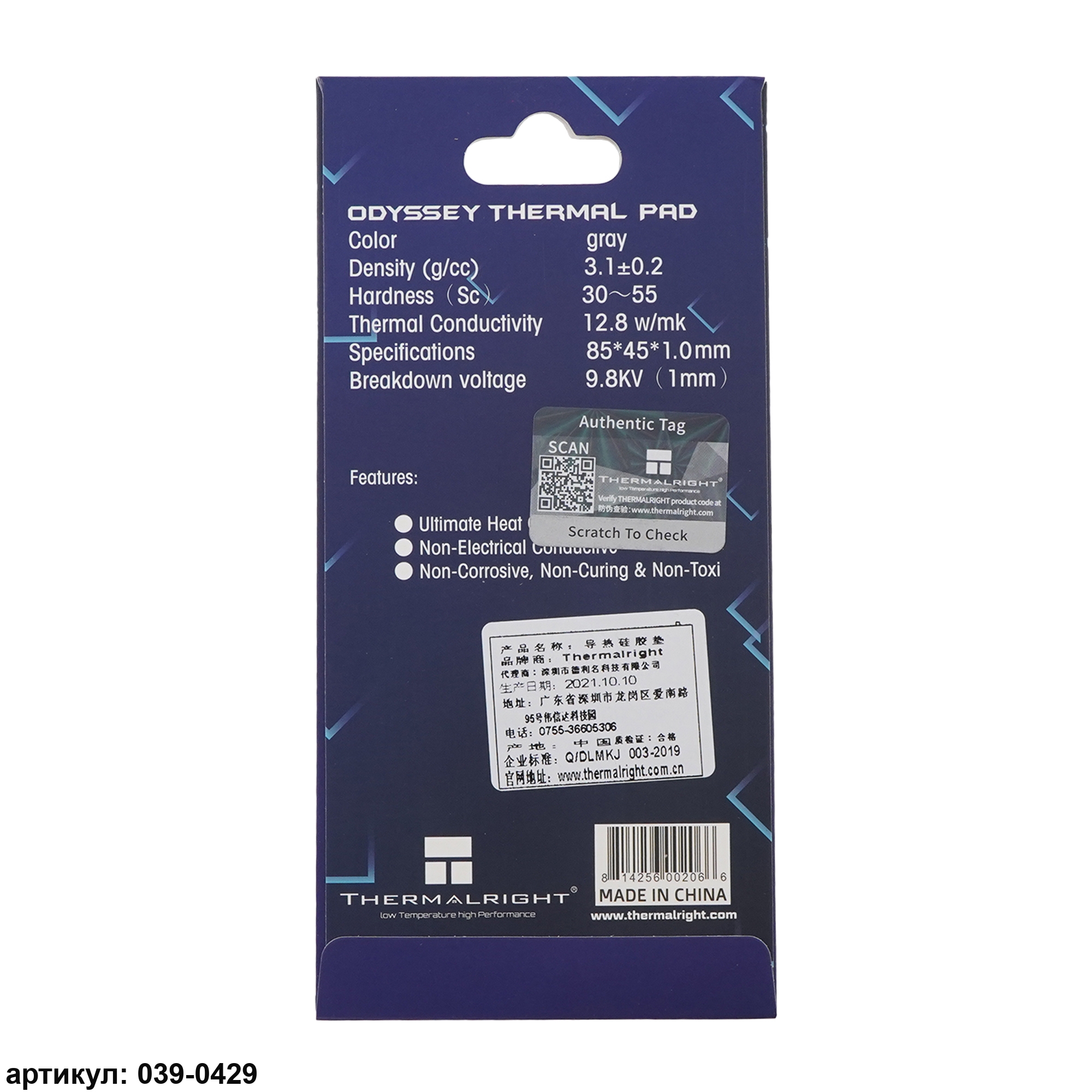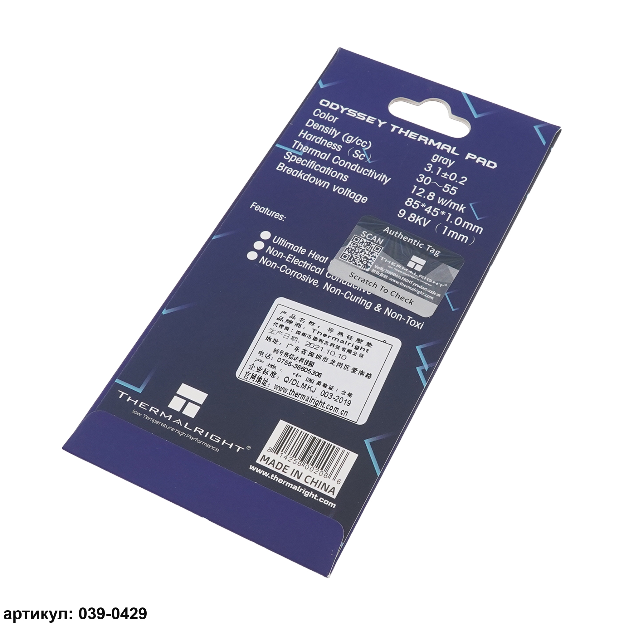 Термопрокладка 85x45х1.0 мм Thermalright 12.8 Вт/(м*К)