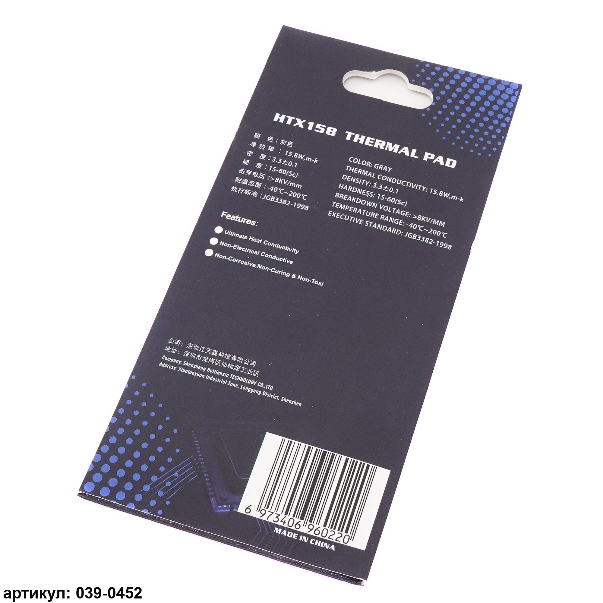 Термопрокладка 85x45х1.5 мм Hutixi HTX158 Thermal Pad 15.8 Вт/(м*К)